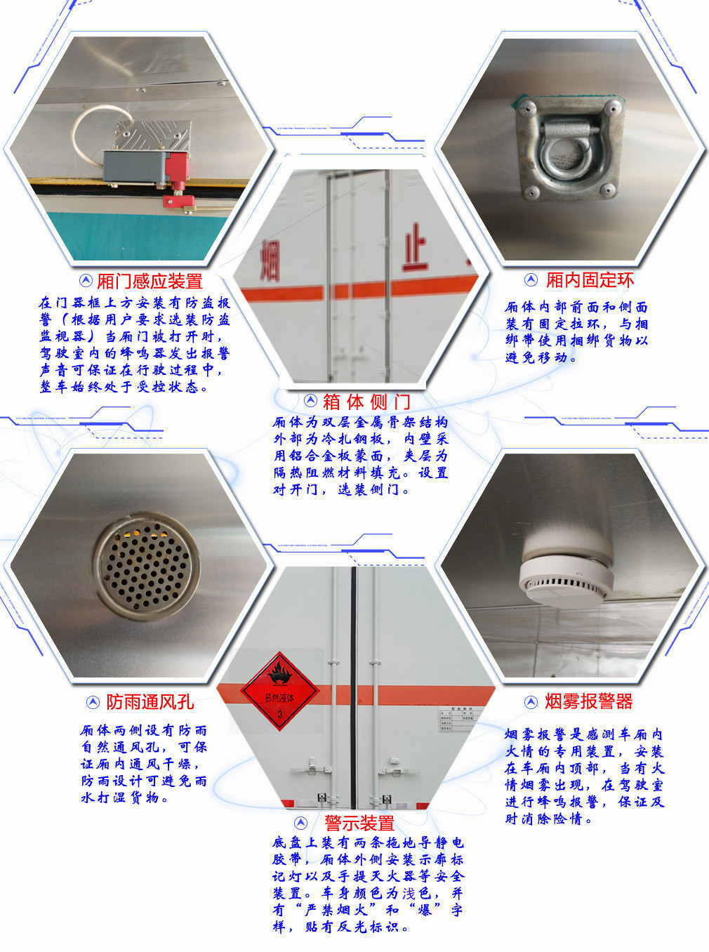 福田歐曼行星煙花爆竹運(yùn)輸車又名炸藥運(yùn)輸車,雷管運(yùn)輸車,防爆車,民爆車,煙花爆竹運(yùn)輸車。它是根據(jù)國(guó)家有關(guān)部委對(duì)爆破器材運(yùn)輸?shù)囊?guī)范和用戶的要求而研制生產(chǎn),產(chǎn)品符合國(guó)防科工委關(guān)于《爆破器材運(yùn)輸車安全技術(shù)條件》的要求。具有廂體強(qiáng)度高、防火阻燃、防雨、防止靜電火花、煙火報(bào)警和防盜報(bào)警等主要功能。