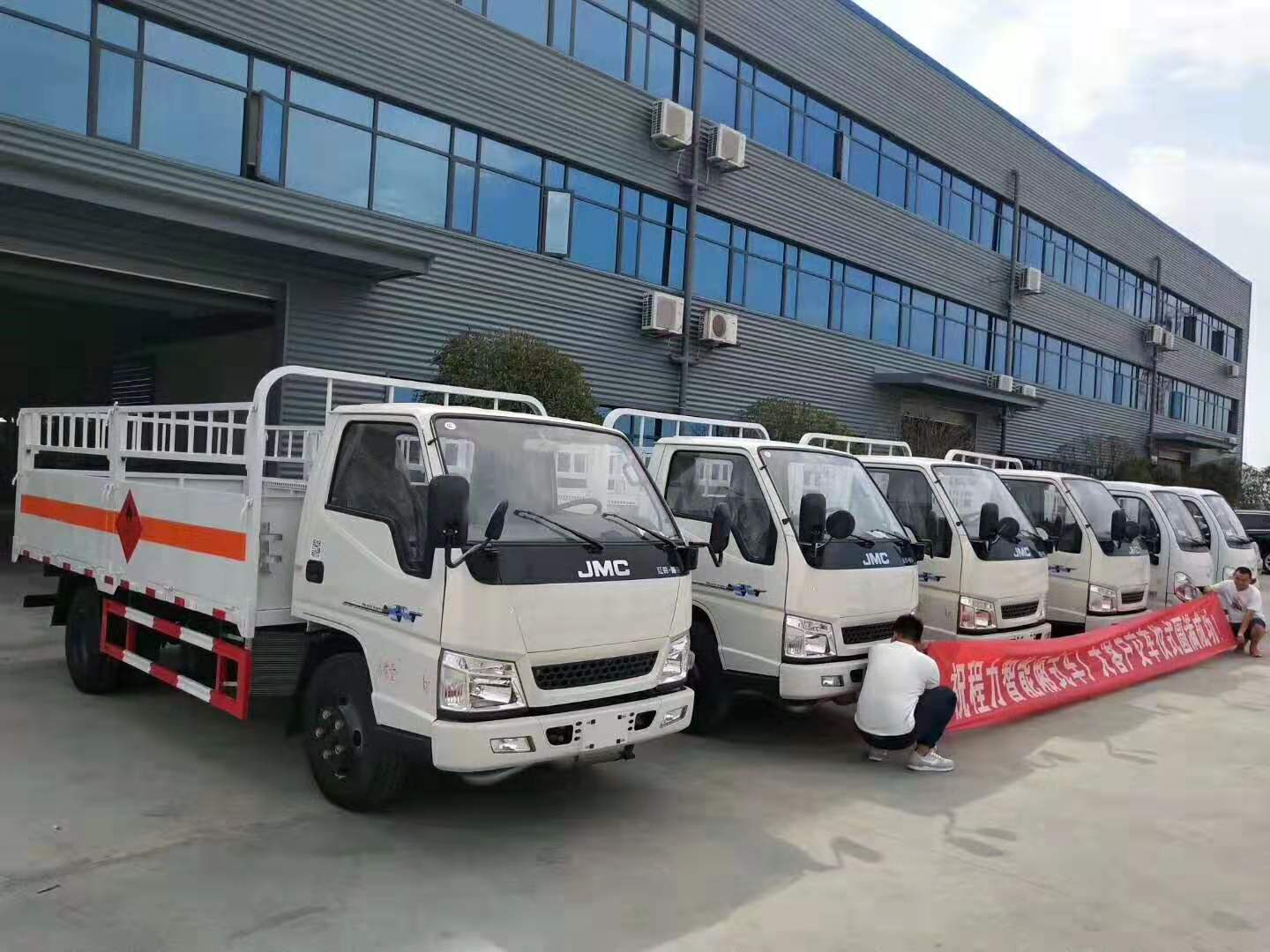 湖北某運輸公司因業務擴展在我司批量采購4臺江鈴氣瓶運輸車和2臺躍進氣瓶運輸車。目前江鈴藍牌氣瓶運輸車和躍進藍牌氣瓶運輸車安全達標均已下發,公司備有大量現車,客戶來廠直接提走,以下是湖北省某運輸公司提車實拍圖片: