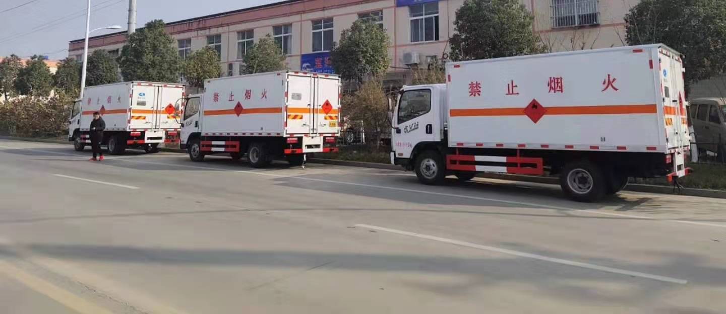 廂體配置:嚴格按照公告尺寸制作,外板采用1mm厚冷軋板有一次性成型的百葉窗,內飾為導電性能良好的鋁板有透氣孔,內襯為矩形管骨架牢靠穩定,內部填充為透氣防潮阻燃的擠塑板,四種材料經現代工藝復合而成,廂體外部上下鋁合金型材包邊,底板和車廂前下部鋪橡膠皮,后門雙開,右側中部單開門,內部有固定貨物的臥環,車輛外部有靜電帶、滅火器、防火罩,車廂內安裝煙霧報警器和門防盜報警器,嚴格按照國家危險品相關法規張貼