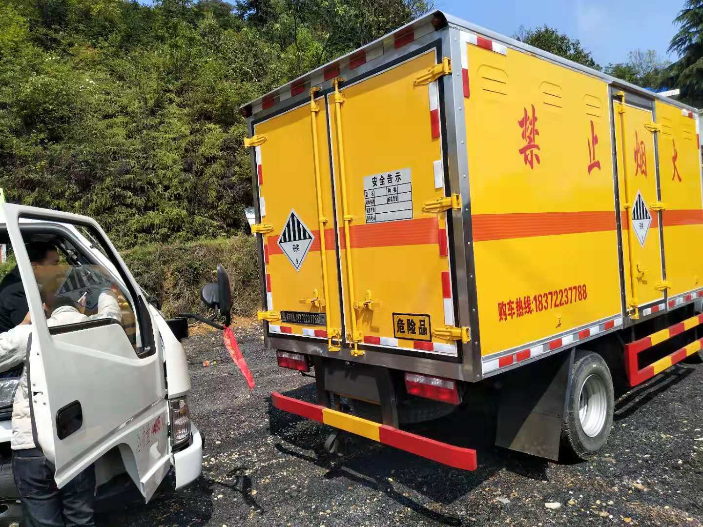 河北王總因公司業(yè)務擴展需增加資質在我司采購了五臺危險品車,前期三臺東風多利卡危險品車已提車,王總覺得非常滿意,繼續(xù)在我司采購了兩臺危險品車(一臺為解放危險品車和一臺江鈴危險品車)。王總是專門從事八類腐蝕品和九類雜項危險品,此次增購的車輛為江鈴腐蝕品廂式車和解放雜項危險品車。為了不耽誤王總用車時間,我司加班加點為王總趕制生產,以下是具體發(fā)車實拍:
