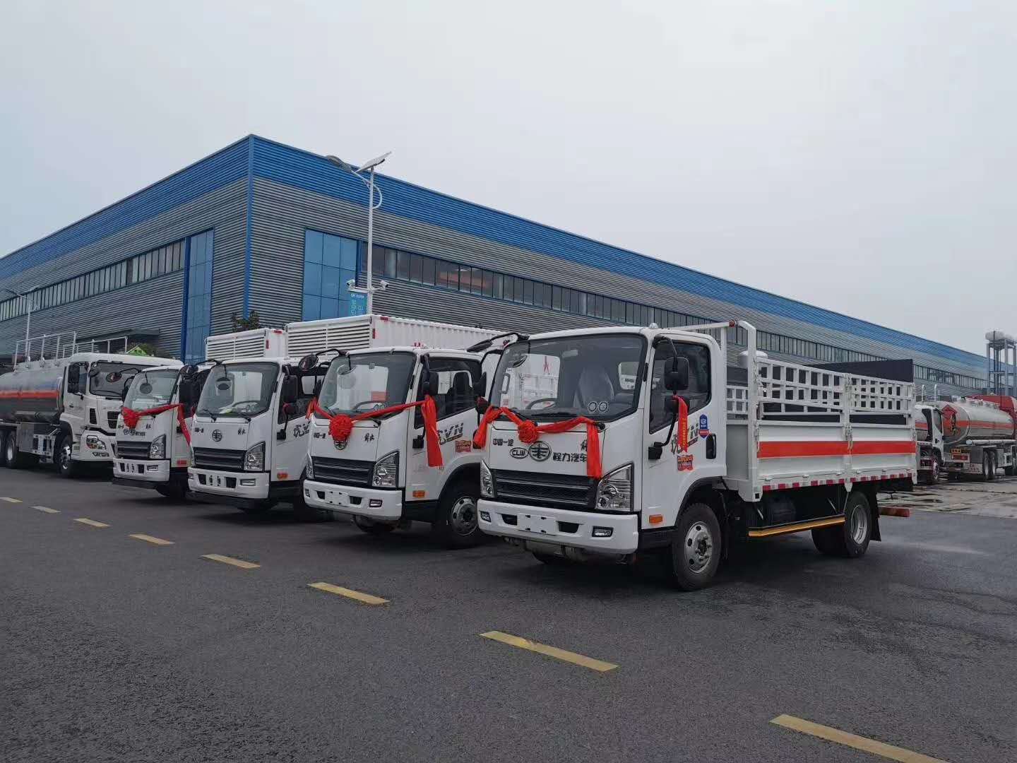 選擇危險品車哪一款好?當然少不了的是客戶用的好!貴州劉總從事液化氣瓶配送多年,因公司業務擴展,需增購四臺危險品車。根據劉總實際使用需求,程力專汽陳經理為其推薦的是解放液化氣瓶車和易燃氣體廂式運輸車。在訂車過程中,劉總提出了要定制專用瓦楞廂體。車廂前部采用透氣孔設置,便于車廂內空氣流通。想客戶所想,急客戶所及。程力專汽加班加點為其趕制了車輛,以下是具體發車實拍: