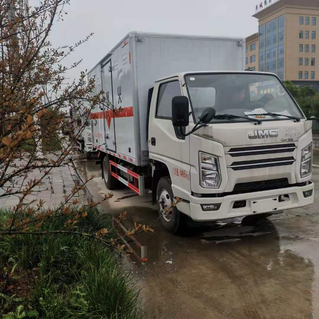 江鈴國六防爆車采用江鈴危險品車專用底盤,國六排放單排駕駛室,軸距3360mm,總質量4495kg,額載1415kg,整車尺寸:5995*2110*2850mm,廂體尺寸:4200*1960*1800mm,五十鈴115馬力,7.00R16LT 8PR鋼絲胎,5檔變速箱,原廠危貨底盤,排氣管前置,ABS,前盤制動,方向助力,限速80km/h。