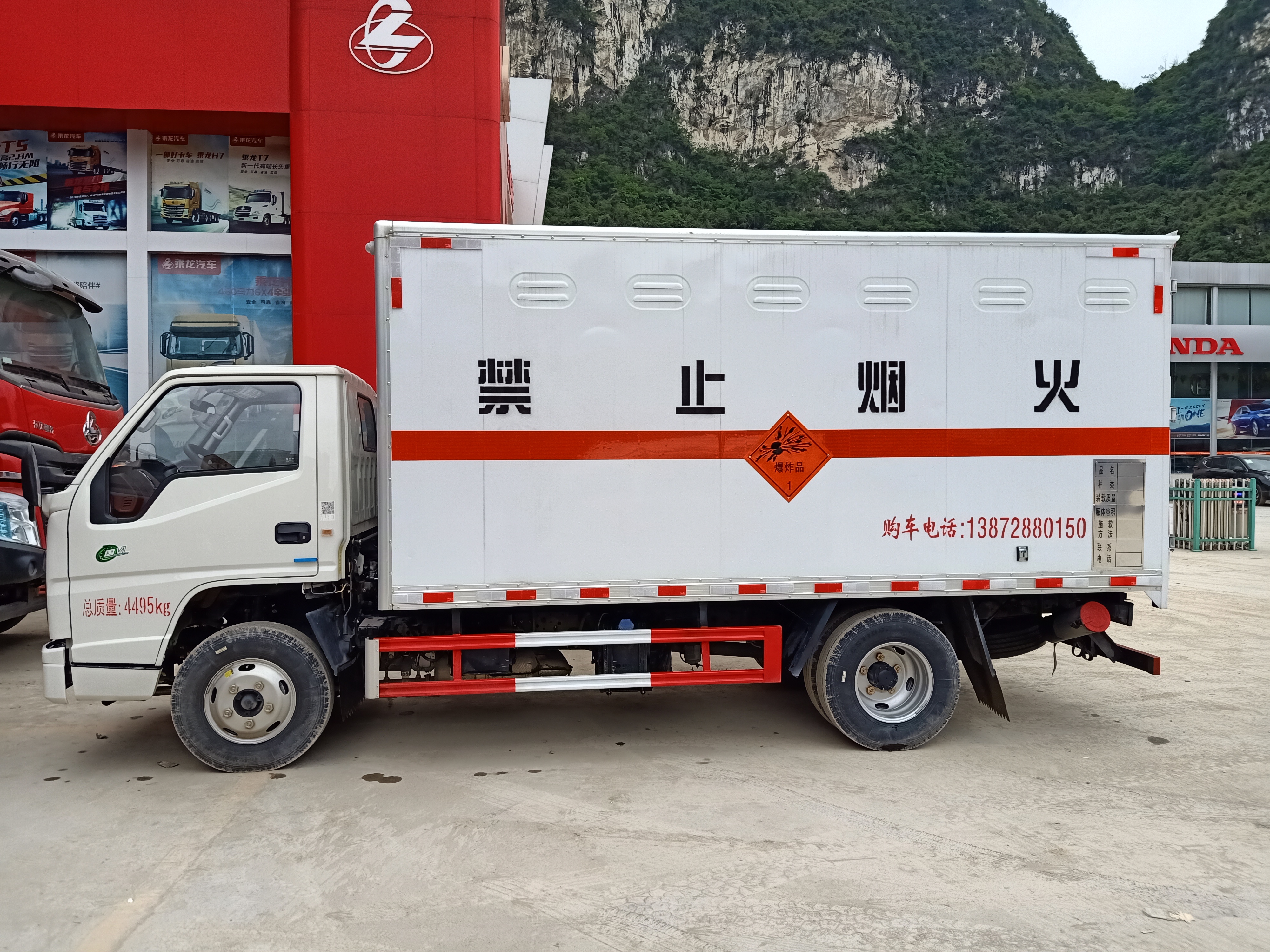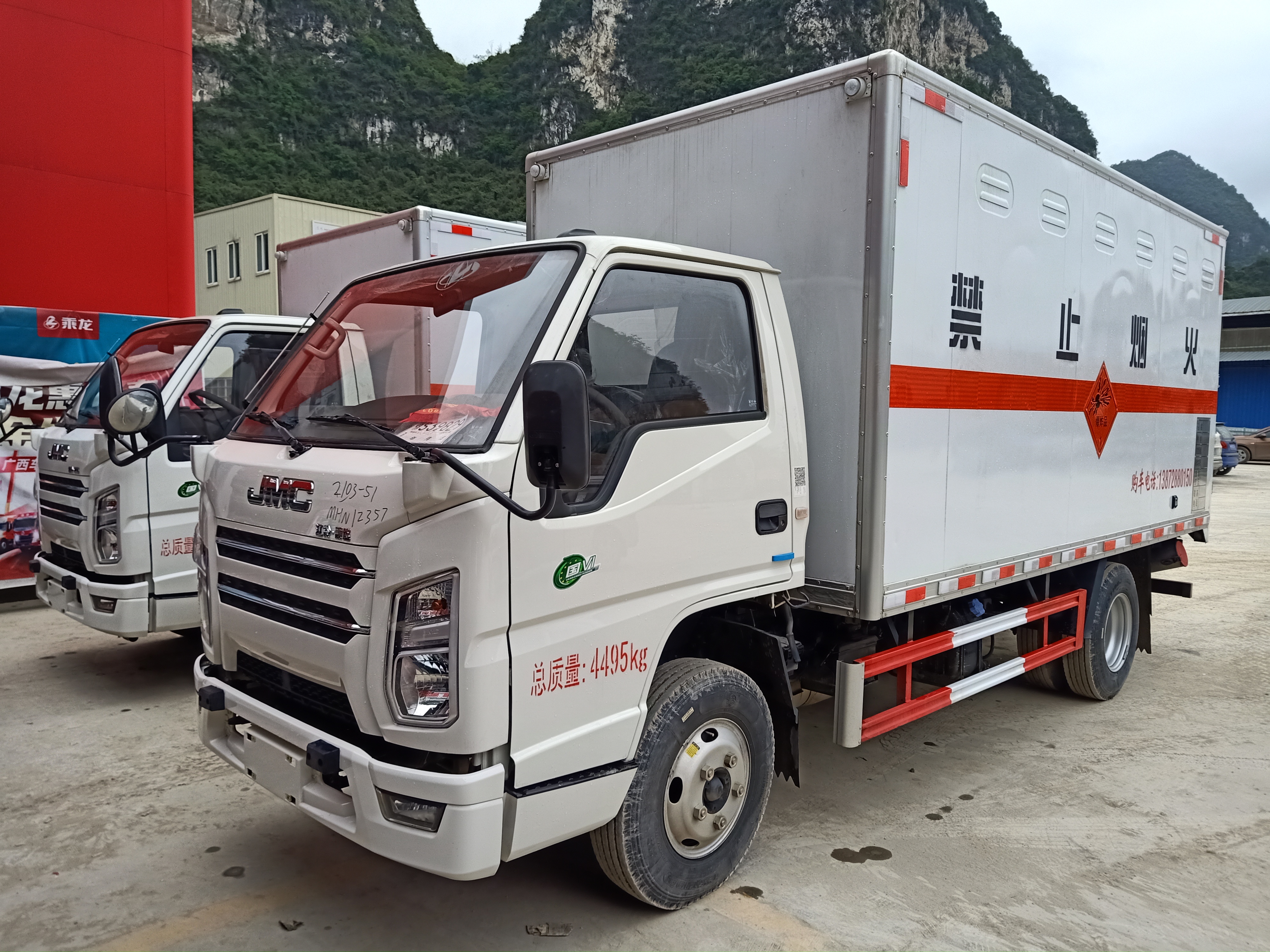 江鈴國六防爆車廂體嚴格按照公告尺寸制作,外板采用1mm厚冷軋板有一次性成型的百葉窗,內飾為導電性能良好的鋁板有透氣孔,內襯為矩形管骨架牢靠穩定,內部填充為透氣防潮阻燃的擠塑板,四種材料經現代工藝復合而成,廂體外部上下鋁合金型材包邊,底板和車廂前下部鋪橡膠皮,后門雙開,右側中部單開門,內部有固定貨物的臥環,車輛外部有靜電帶、滅火器、防火罩,車廂內安裝煙霧報警器和門防盜報警器,嚴格按照國家危險品相關法規張貼。