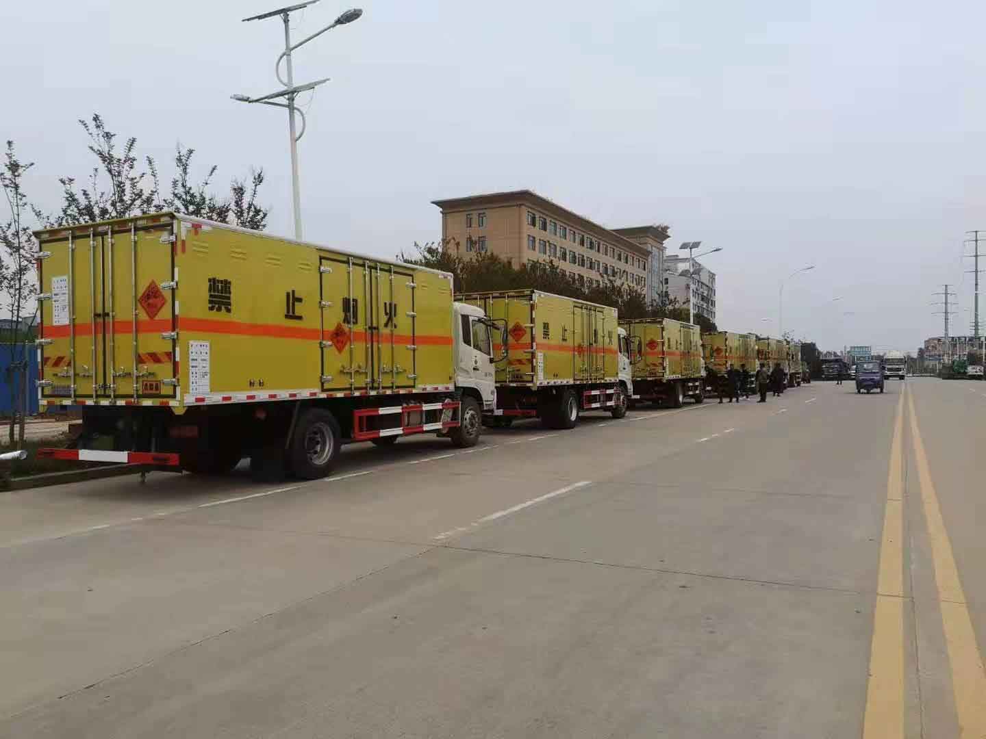 民爆危險(xiǎn)品車是目前市場上使用非常廣泛的車型,該車主要在工地上使用非常多。近日,河北雷總因?yàn)榈V上開采,需要運(yùn)輸煙火及炸藥,在我司批量采購了6臺東風(fēng)天錦一類危險(xiǎn)品車,以下是具體發(fā)車實(shí)拍: