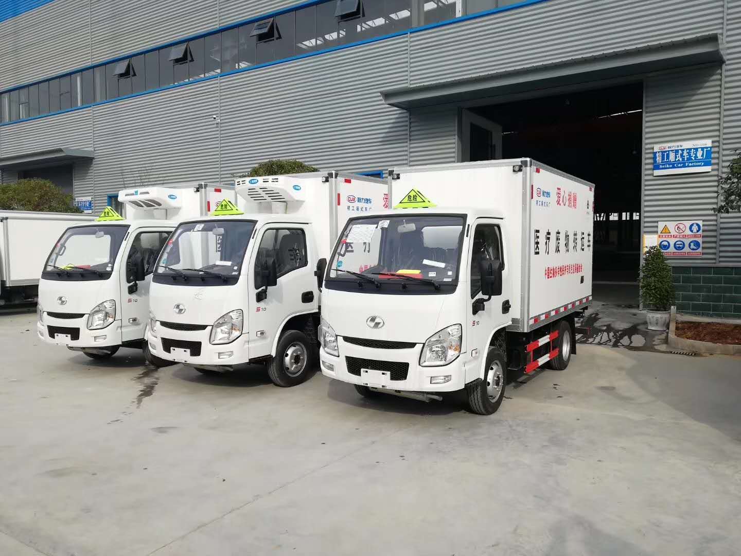 江鈴國(guó)六醫(yī)療廢物轉(zhuǎn)運(yùn)車和躍進(jìn)國(guó)六醫(yī)療廢物轉(zhuǎn)運(yùn)車廂體外玻璃鋼內(nèi)不銹鋼,中間填充高密度保溫材料(聚氨脂),車廂與大梁之間采用橡膠皮廂體下方圓弧處理,后門為雙層密閉結(jié)構(gòu),并采用迷宮式封條,使車廂完全封閉。廂內(nèi)安裝紫外線消毒燈,加裝自動(dòng)消毒噴霧器。廂體兩側(cè)帶固定貨物卡槽。車廂體內(nèi)裝配紫外線消毒殺菌設(shè)備。醫(yī)療廢物轉(zhuǎn)運(yùn)車采用帶有“醫(yī)療廢物”標(biāo)識(shí)。整車帶零下5度機(jī)組。嚴(yán)格按照公告外形及尺寸制作。