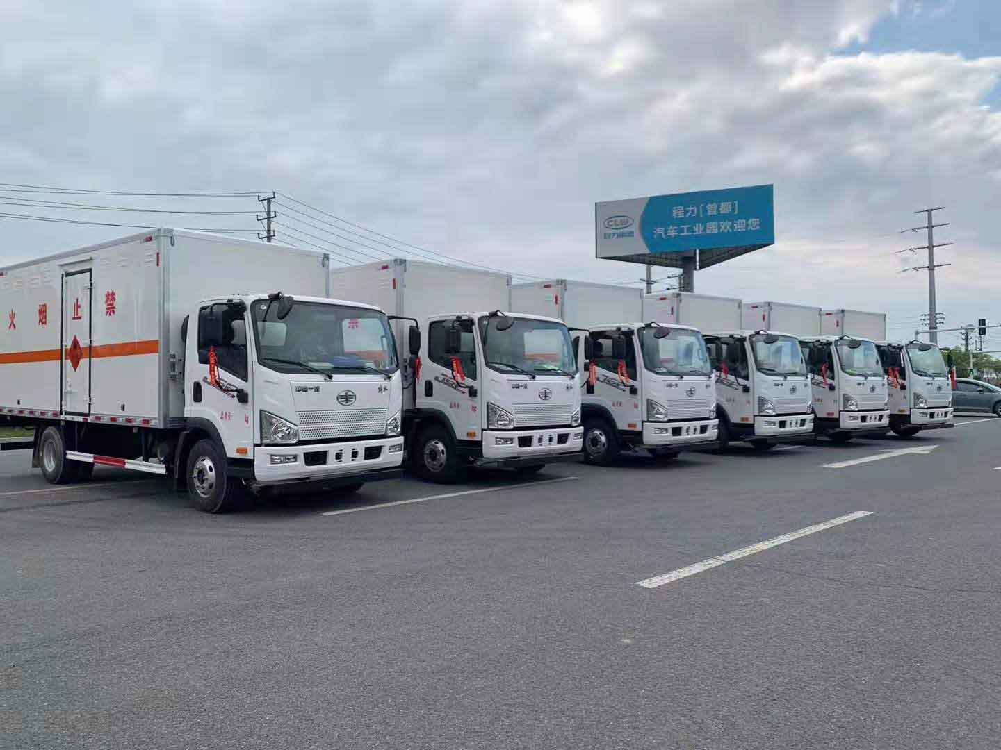 沒有奇跡,只有努力的痕跡,沒有運氣,只有堅持的勇氣。相信自己,堅持向上,總會遇見驚喜。近日,五一新規傳得沸沸揚揚,很多客戶來程力專汽訂購危險品車。以下是黑龍江潘總在我司采購的6臺解放5米1危險品車實拍圖片: