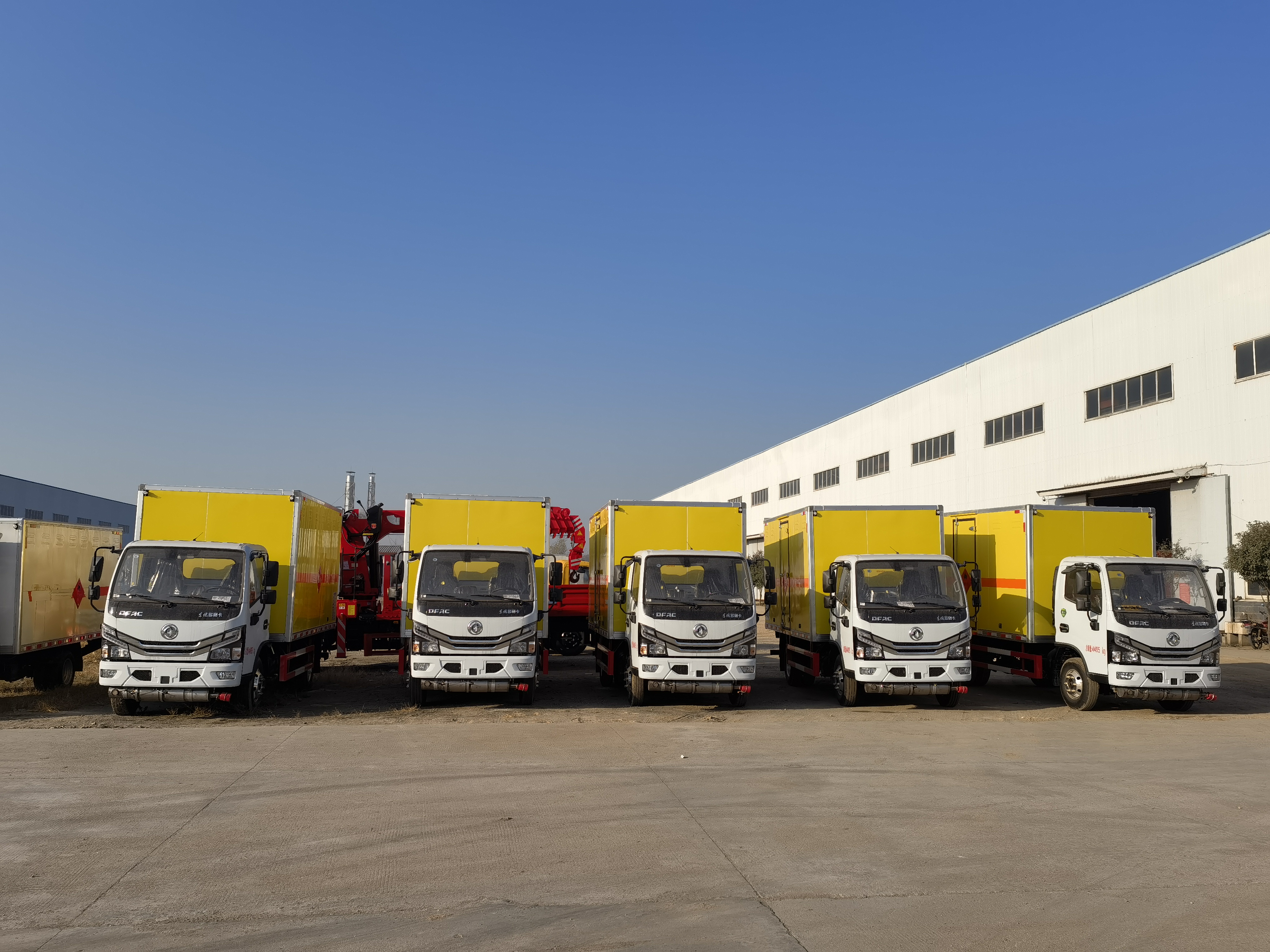 危化品運輸重點提到的是一類危險品,很多客戶選擇該類運輸車型時都非常謹慎,選擇高質量性價比好的車型很重要。近日,一款東風多利卡全柴130馬力發動機爆破運輸車備受歡迎。以下是湖南張總批量訂購5臺東風多利卡國六爆破運輸車發車實拍: