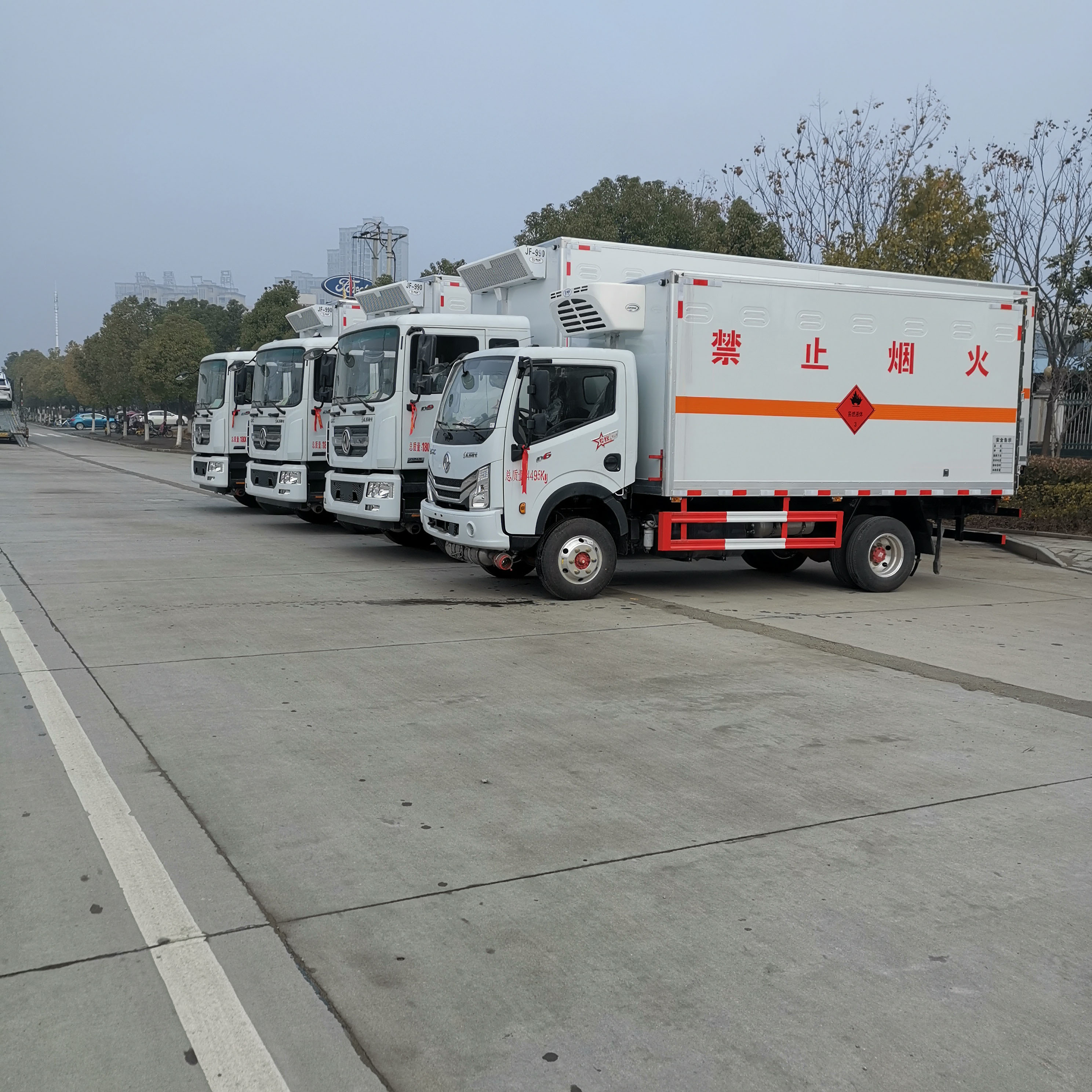 危險品車運輸都少不了專用的車輛,尤其隨著市場管理越來越嚴格,很客戶購買危險品車都想要帶機組的,以便氣溫升高,車廂內通風效果不好,導致車廂溫度過高引發安全事故。因而根據市場需求,我司定制了幾款專門適合制冷機組的三類危險品車,甘肅李總聞訊而來,在我司批量訂購了4臺帶制冷機組危險品車,以下是具體發車實拍: