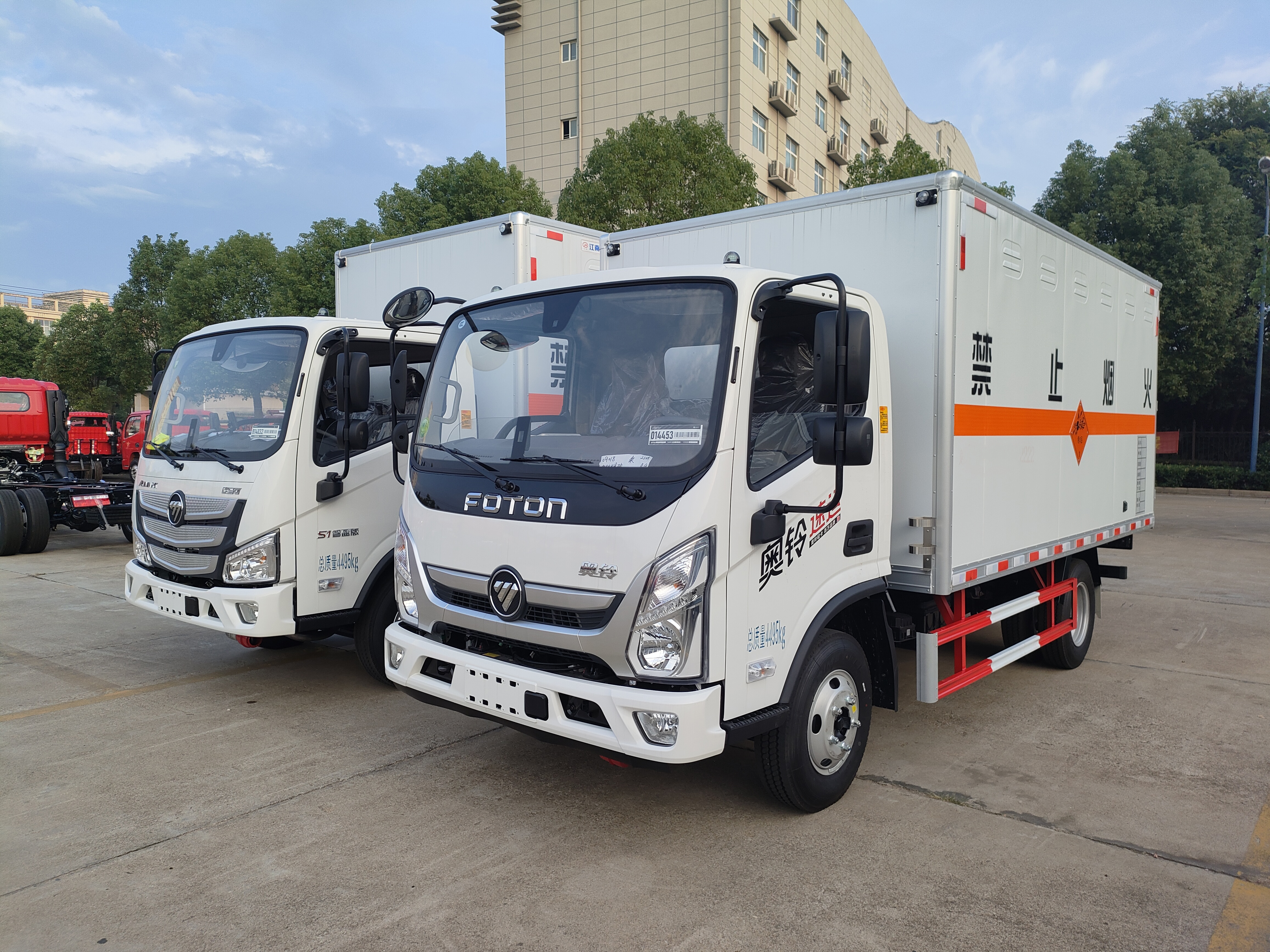 福田國六藍牌危險品車分別選用的是奧鈴駕駛室和康明斯的駕駛室,為了節能省油,用戶選用的全部是康明斯的發動機,匹配有中控鎖、電動門窗、原廠空調。該車箱體根據用戶需求定制有2米3高和2米1高等多種尺寸。在運輸引線等物品采用的是矮箱體車型,在運輸煙花成品的車輛采用的是高箱體車型。選用的是131馬力發動機,高配置省油神器。