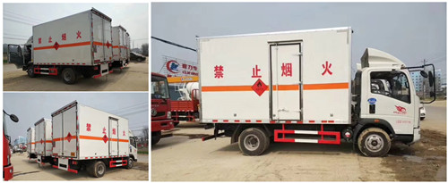 上裝配置:貨廂尺寸:4100X2000X1800。廂體外飾冷板、內飾鋁板、中間為防阻燃泡沫、廂內安裝臥環、煙霧報警器、防盜報警器、右邊開側門、后雙開門、帶拖地靜電帶,其它均按廠標組織生產;