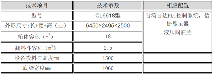 移動式壓縮垃圾箱技術參數: