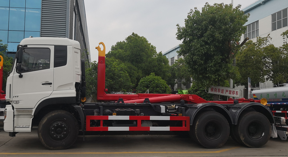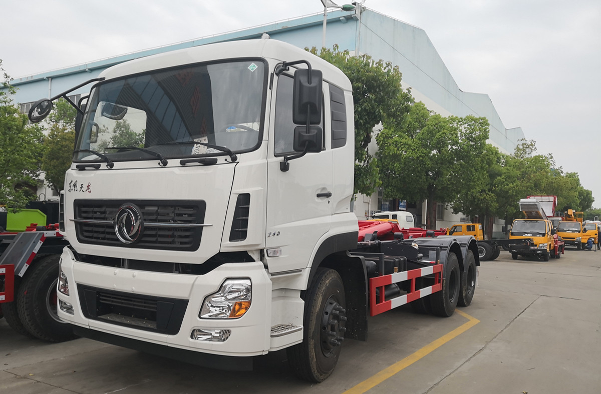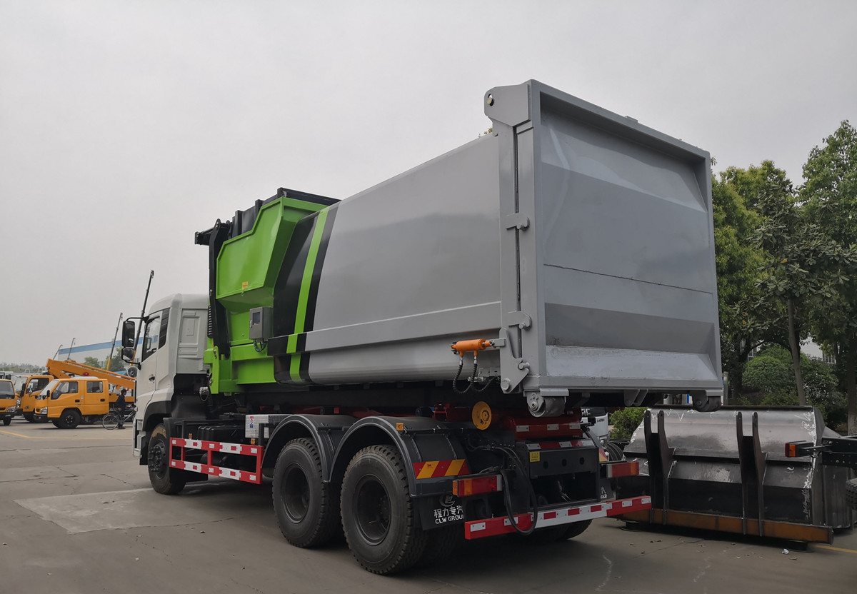 東風天龍勾臂垃圾車帶移動式壓縮垃圾站