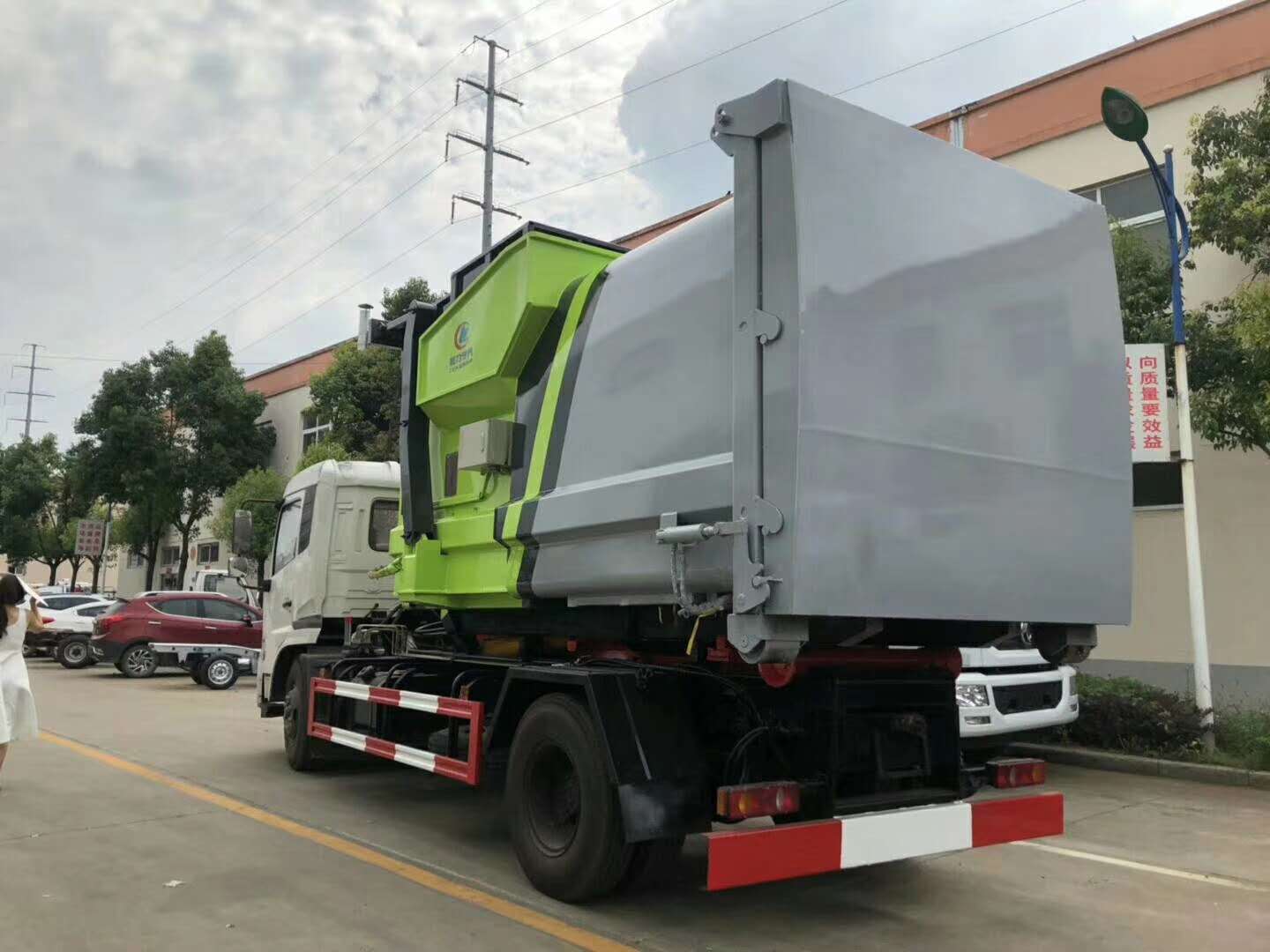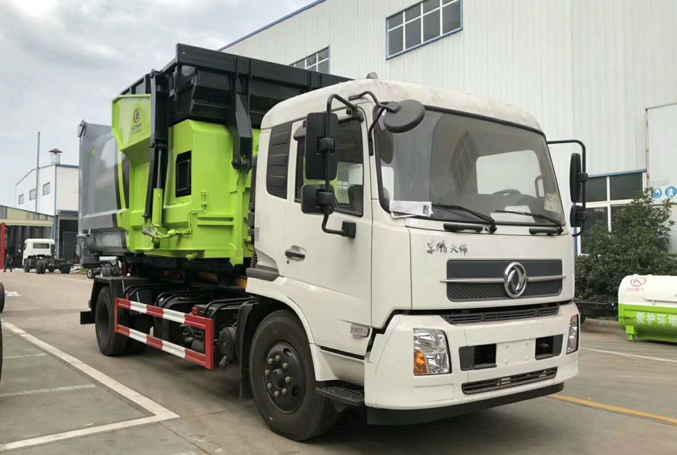 東風天錦勾臂垃圾車帶移動式壓縮垃圾站