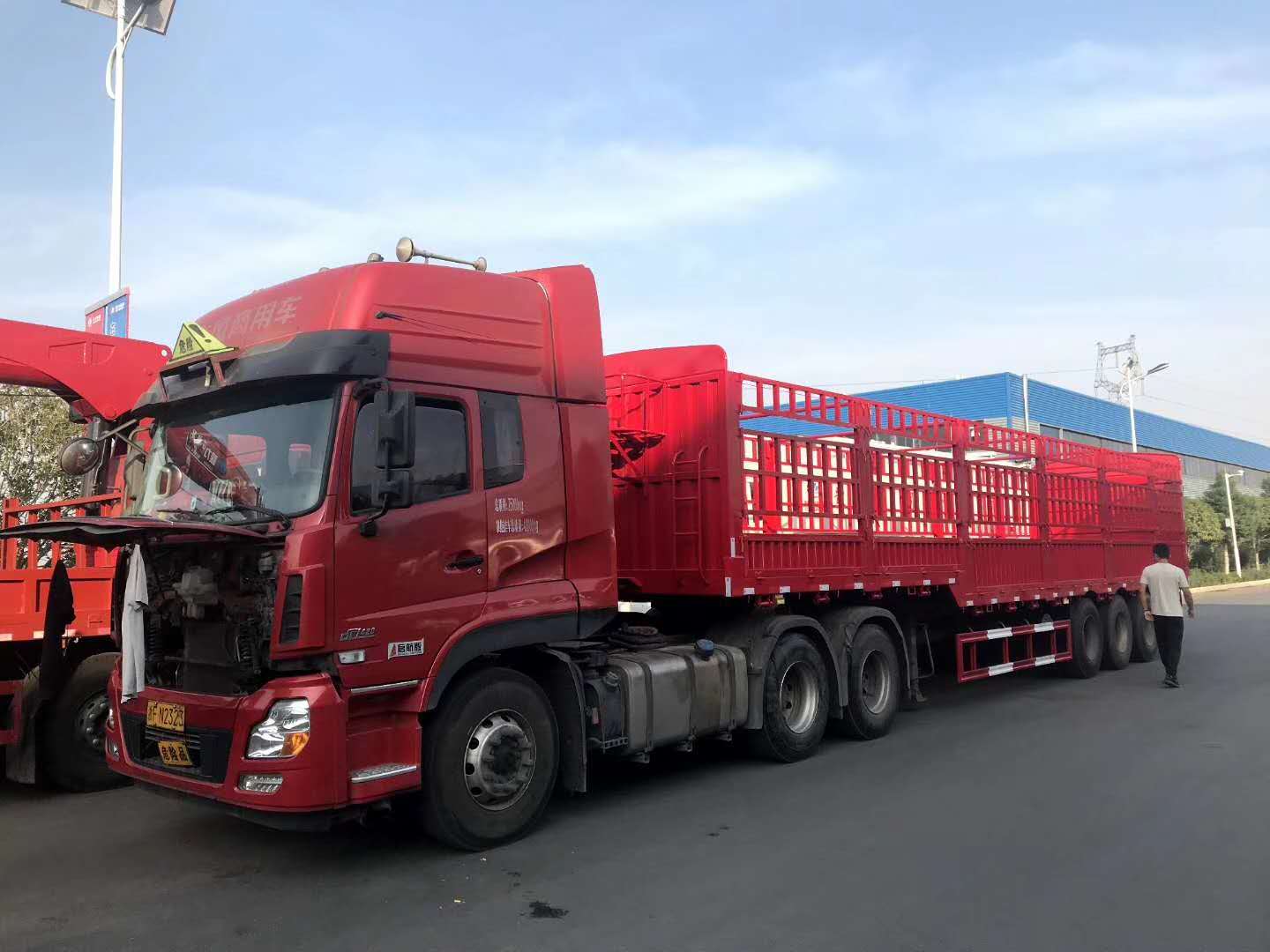 采用適用于牽引危險品運輸半掛車的牽引車.該車運輸一個40英尺危險品罐箱,選裝尾部標志板的安裝位置,罐箱裝運的危險品類別為:非劇毒化學品及爆炸品,此車加裝配滅火器,導靜電接線盤及導電拖地帶,牽引銷處車架高度為90mm,大梁翼板腹板上 8mm,下 10mm,中 6mm,高強度折彎型/直梁貫穿梁,90#牽引銷,28噸支腿,13 噸 廣東富華 車軸/3 軸,16 噸剎車片,成山12R22.5/12輪胎,帶ABS,13X10片或 16X8 片板簧,1200mm 工具箱一個,備胎架一個,氣室四大兩小 |