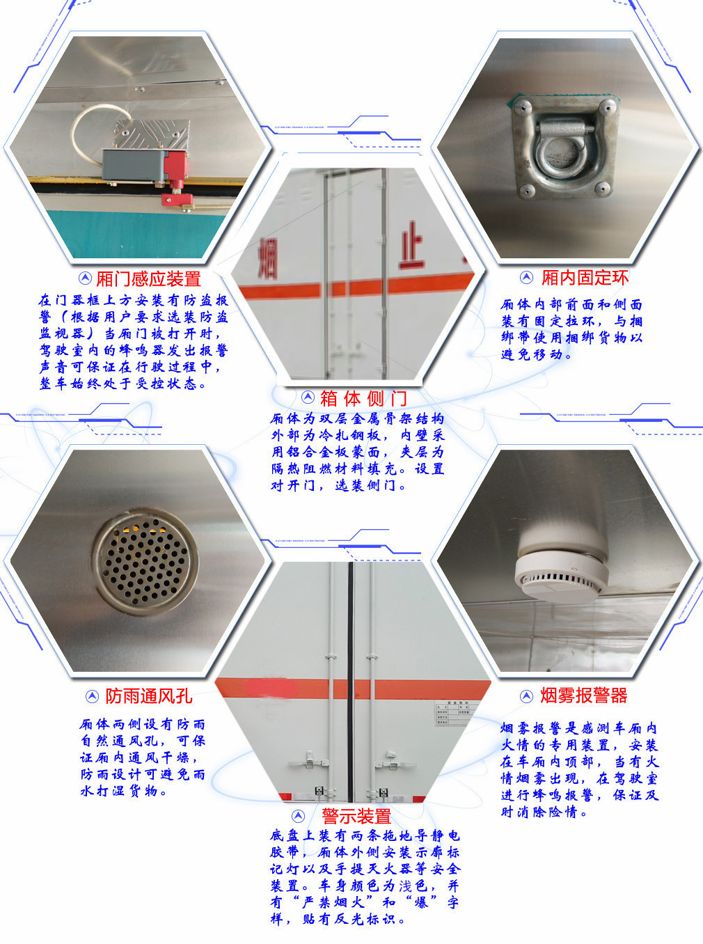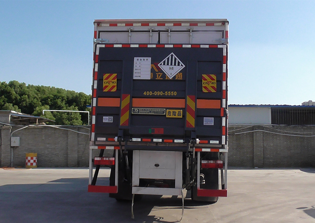 該車為危險品運輸車.該車頂部封閉,不可開啟.隨底盤選裝高頂駕駛室、選裝氣喇叭,遮陽罩,綠色濾光帶,踏步,選裝鋁合金油箱.運輸具有獨立容器包裝的雜項介質(zhì).危險貨物類項號:9.廢物類別: HW08,HW21,HW22,HW49.后部安裝液壓尾板,液壓尾板收起水平長度:300mm,尾板質(zhì)量為550kg,側、后防護材料為Q235,連接方式:焊接連接,后防護截面高120mm,截面寬50mm,下邊緣離地高490mm;選裝后部不帶尾板時,后防護裝置材料:Q235,連接方式為焊接,后防護截面高120mm,截面寬50mm,下邊緣離地高490mm.選裝側開門型式及位置;廂體選裝開百葉窗,選裝后部樣式.整備質(zhì)量/載質(zhì)量(kg)/駕駛室準乘人數(shù)對應關系為:7285/10585/2人,7285/10520/3人,7335/10535/2人,7335/10470/3人,7680/10190/2人,7680/10125/3人,7880/9990/2人,7815/9990/3人.僅采用排氣管前置,子午胎,限速裝置,輔助制動裝置和前盤制動器的底盤;限速80km/h.安裝具有衛(wèi)星定位功能的行駛記錄儀;EBS系統(tǒng)生產(chǎn)廠家,型號:襄陽東風隆誠機械有限責任公司,EBS/ESC-d.YCS04200-68/B6.2NS6B230/D4.5NS6B220/CY4SK761此四款發(fā)動機油耗值均為26.2(L/100km).后軸僅采用空氣懸架.轉向軸已安裝防爆胎裝置.選裝ETC車載裝置.隨底盤選裝底盤附件位置. |