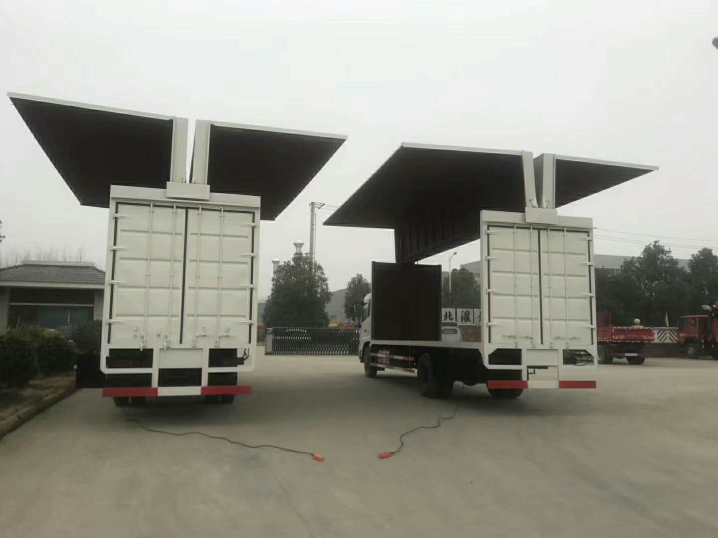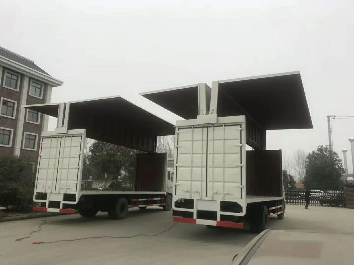 1.飛翼車可形成敞開式車廂。便于機械集裝化裝卸貨物,提高裝卸效率。12m長普通廂式裝卸貨約需1.5-2小時,展翼廂式車約需20-30分鐘,裝卸貨物可節省1-1.5小時,展翼車特別適合中短距離運輸,可成倍提高效率。
