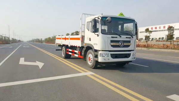 東風D9額載10噸氣瓶運輸車采用原廠危貨底盤,5200mm軸距,6檔變速箱,帶ABS,前盤制動,限速器,排氣管前置,9.00R20輪胎,發動機:ISD160 50,防飛濺,自動調整臂,帶原廠空調,貨箱配置:整車尺寸:9000X2550X3020,貨箱長寬高:6750X2350X600(單位毫米),廂體為金屬骨架結構,廂體生產工藝采用4mm底板,鋪靜電膠皮,高600mm的墻板,上側配可拆卸護欄。配備隨車工具。可原裝液壓尾板,車輛嚴格按照公告制作。