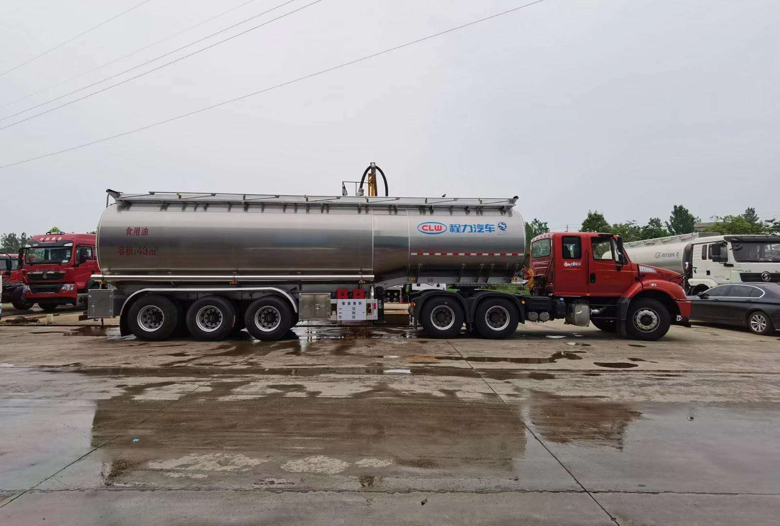 鋁合金運(yùn)油半掛運(yùn)輸車壹臺(tái),整車型號(hào)CLW9407GYYLV,公告容積:41.6,罐體有效容積:42立方,5182鋁合金板材,罐體6個(gè)厚,封頭6個(gè)厚,隔板5個(gè)厚,單倉(cāng)帶壹套下裝,帶壹個(gè)智能海底閥,帶兩個(gè)歐標(biāo)罐口,12噸廣東富華橋帶盤式制動(dòng),12.00R22.5成山真空胎,富華空氣懸掛,帶ABS,90牽引銷,28噸支腿,前后爬梯,其他按廠標(biāo)。