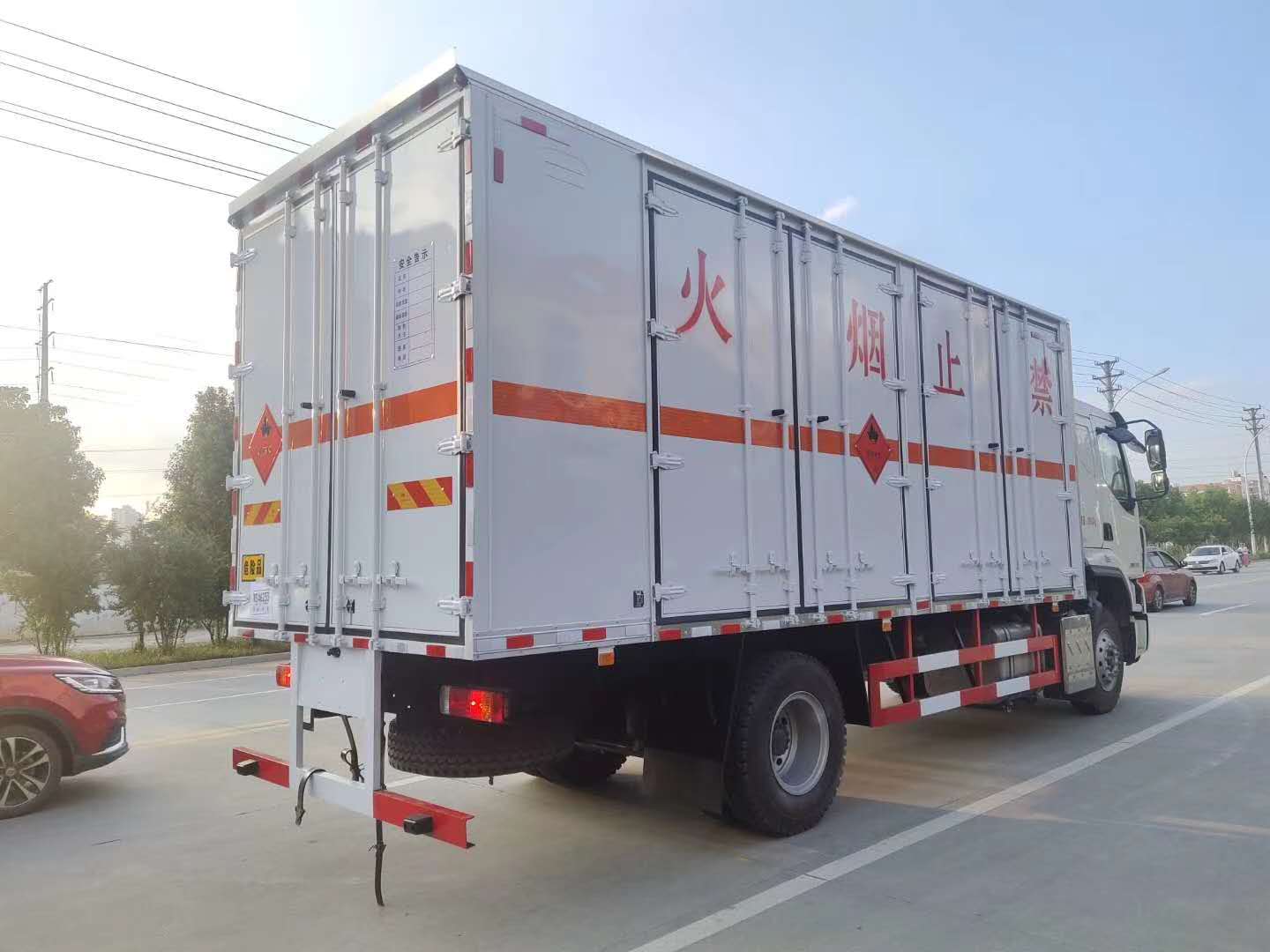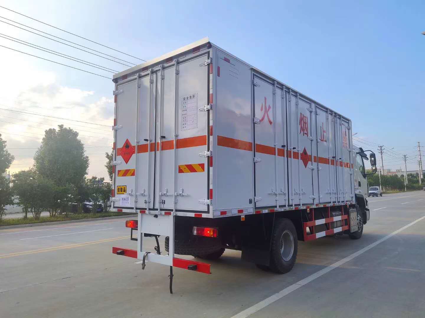 柳汽乘龍國六新規(guī)危險(xiǎn)品車整車尺寸:9000×?2550×3600;廂體尺寸:6600×2420×2200 ,嚴(yán)格按照公告尺寸制作,外板采用1mm厚冷軋板有一次性成型的百葉窗,內(nèi)飾為導(dǎo)電性能良好的鋁板有透氣孔,內(nèi)襯為矩形管骨架牢靠穩(wěn)定,內(nèi)部填充為透氣防潮阻燃的擠塑板,四種材料經(jīng)現(xiàn)代工藝復(fù)合而成,廂體外部上下鋁合金型材包邊,底板和車廂前下部鋪橡膠皮,后門雙開,右側(cè)中部雙開門,內(nèi)部有固定貨物的臥環(huán),車輛外部有靜電帶、滅火器、防火罩,車廂內(nèi)安裝煙霧報(bào)警器和門防盜報(bào)警器,嚴(yán)格按照國家危險(xiǎn)品相關(guān)法規(guī)張貼。