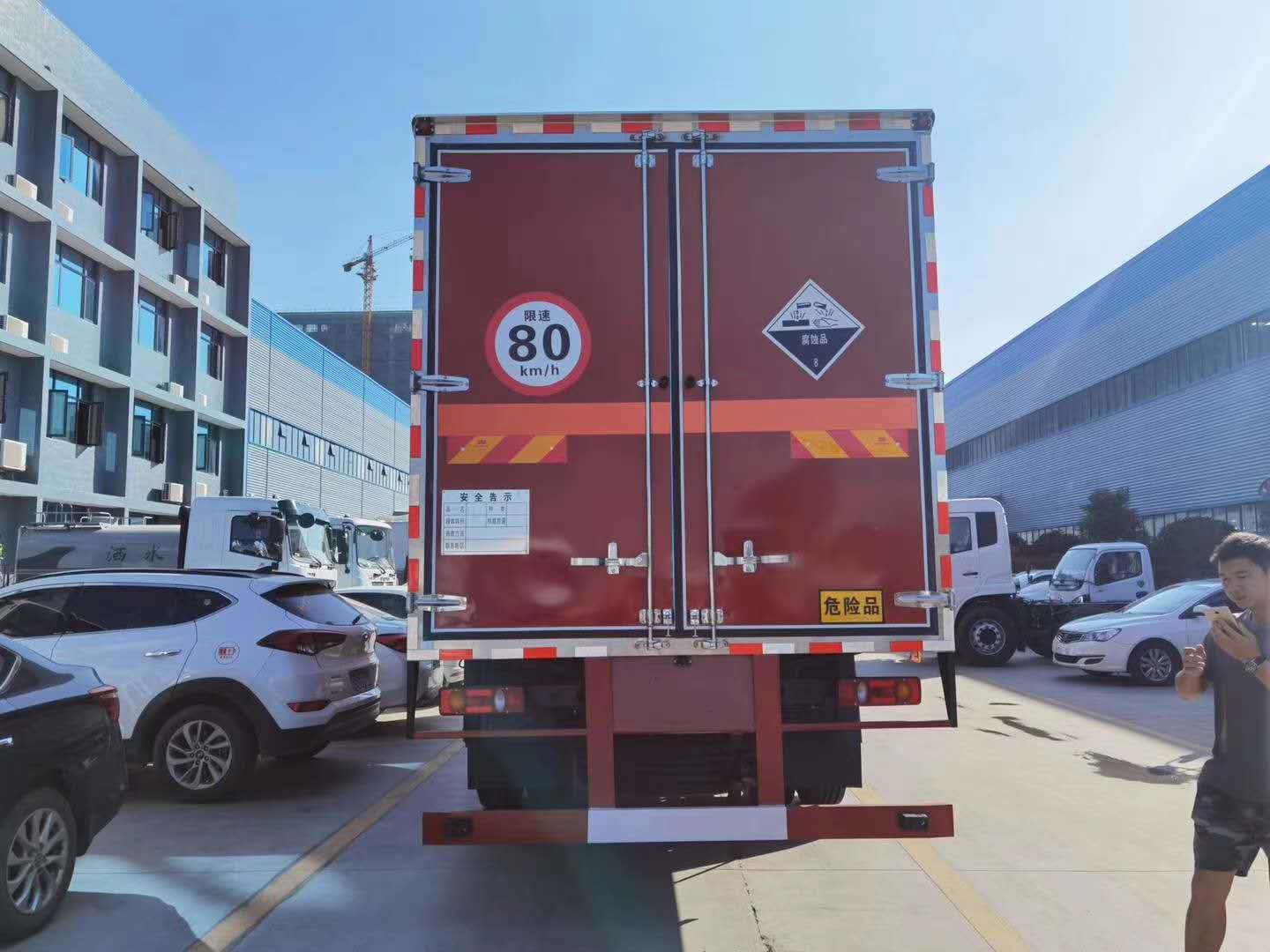 八類腐蝕性物品廂式運輸車一直是危險品車中要求非常嚴格的車型,因其特殊性所以在定制車輛時,我司都會特別注意。為了讓車輛與其他車輛區分,此次我司為客戶定制了的是整車紅東風天錦6米2腐蝕性物品廂式運輸車。