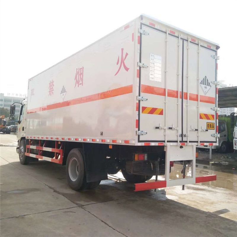柳汽乘龍單橋新規(guī)危險(xiǎn)品車嚴(yán)格按照公告尺寸制作,外板采用1mm厚冷軋板有一次性成型的百葉窗,內(nèi)飾為導(dǎo)電性能良好的鋁板有透氣孔,內(nèi)襯為矩形管骨架牢靠穩(wěn)定,內(nèi)部填充為透氣防潮阻燃的擠塑板,四種材料經(jīng)現(xiàn)代工藝復(fù)合而成,廂體外部上下鋁合金型材包邊,底板和車廂前下部鋪橡膠皮,后門雙開,右側(cè)中部雙開門,內(nèi)部有固定貨物的臥環(huán),車輛外部有靜電帶、滅火器、防火罩,車廂內(nèi)安裝煙霧報(bào)警器和門防盜報(bào)警器,嚴(yán)格按照國家危險(xiǎn)品相關(guān)法規(guī)張貼。