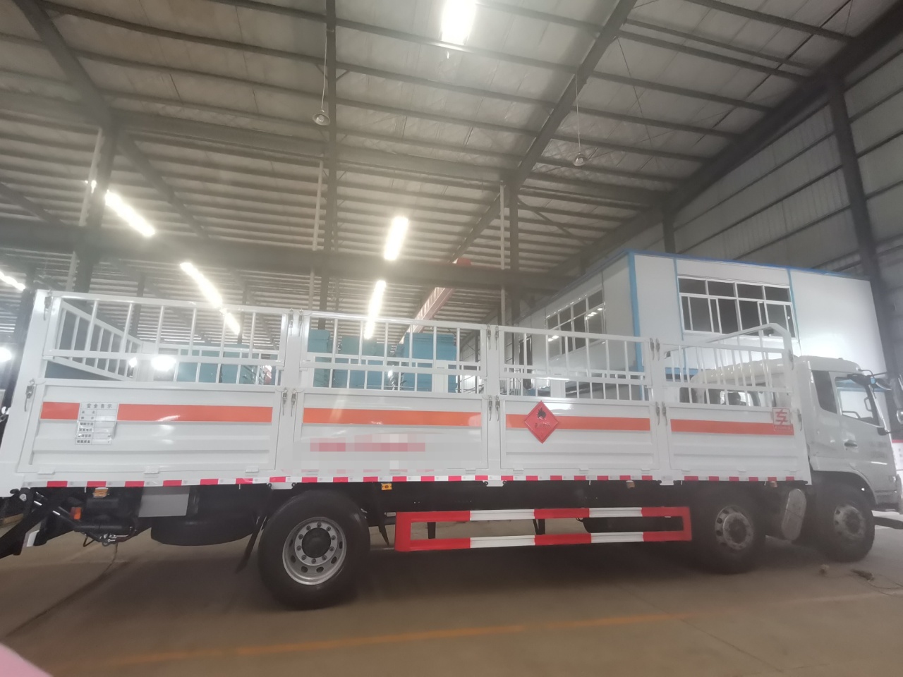 東風天錦小三軸氣瓶運輸車外板采用1.2MM厚冷軋板,內襯為矩形管骨架牢靠穩定,底板為5mm花紋板,上鋪有靜電膠皮,有靜電帶、滅火器、防火罩。整車國標反光標示及警告標志。可選裝無柵欄,選擇車型顏色。嚴格按照國家危險品法規進行標識粘貼。隨車提供資料:機動車上戶發票,整車合格證,底盤合格證,隨車工具,服務手冊,保修手冊。