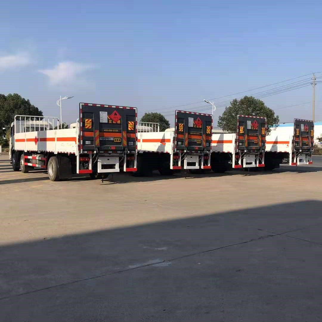 天錦三軸7米7氣瓶運輸車整車型號:DFH5250TQPBXV,整車尺寸:11000×2550×3040mm,箱體尺寸:8600×2450×800mm。采用東風天錦排半駕駛室,原廠危化底盤,軸距1800+4100mm,康明斯210馬力發(fā)動機(ISB210 50),7檔變速箱,10噸后橋,295/80R22.5 18PR真空胎,空調(diào),ABS,限速80,前盤制動,排氣管前置,斷氣剎,方向助力。嚴格按照公告尺寸制作,邊2底4材質(zhì),底板上鋪靜電膠皮,側(cè)板平板內(nèi)置臥環(huán),側(cè)板上帶可卸式高欄,配備滅火器,三角頂燈,靜電拖帶等,嚴格按照國家危險品法規(guī)進行“易燃氣體”標識粘貼等