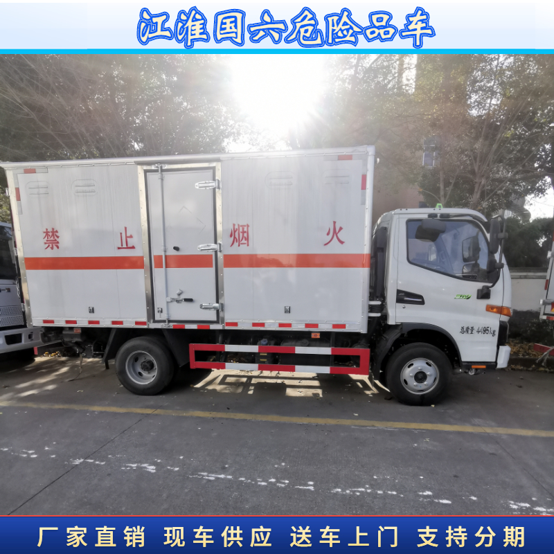江淮國六危險品廂式運輸車整車在制作好后還會按照車輛運輸?shù)念愴梺韽堎N危險標(biāo)識,及安全告示牌,另外了還標(biāo)配有危險品三角吸頂燈,危險品牌,滅火器,防火帽,靜電帶等附件。這款底盤不僅可以制作成運輸車、易燃?xì)怏w廂式運輸車、易燃液體廂式運輸車、毒性和感染性物品廂式運輸車等車型,還可以制作成雜項危險物品廂式運輸車,而且它們的廂體尺寸是一樣的。