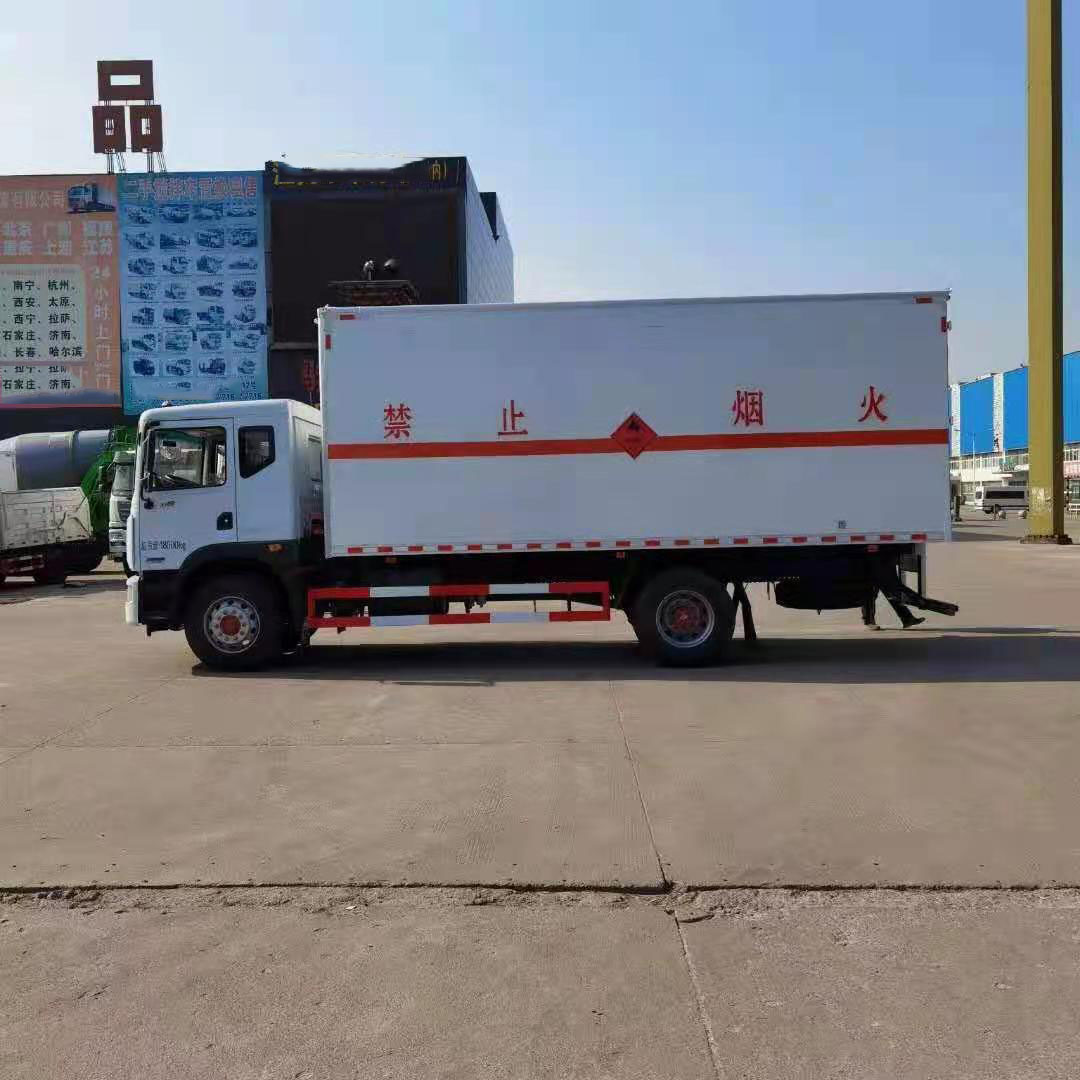 東風(fēng)D9國六帶雙開側(cè)門危險品車采用東風(fēng)多利卡D9平頭帶臥汽車,康明斯發(fā)動機220馬力國六排放標(biāo)準(zhǔn),帶方向助力,空調(diào),8檔變速箱295真空綱絲胎,帶前盤式剎車,ABS,限速裝置,大燈高低可調(diào),安裝防飛濺檔泥板,三角墊木,反光背心,底扳采用4mm厚綱板制作,帶活動可拆卸高欄,底部鋪靜電膠皮。帶危險品三角燈防火罩。