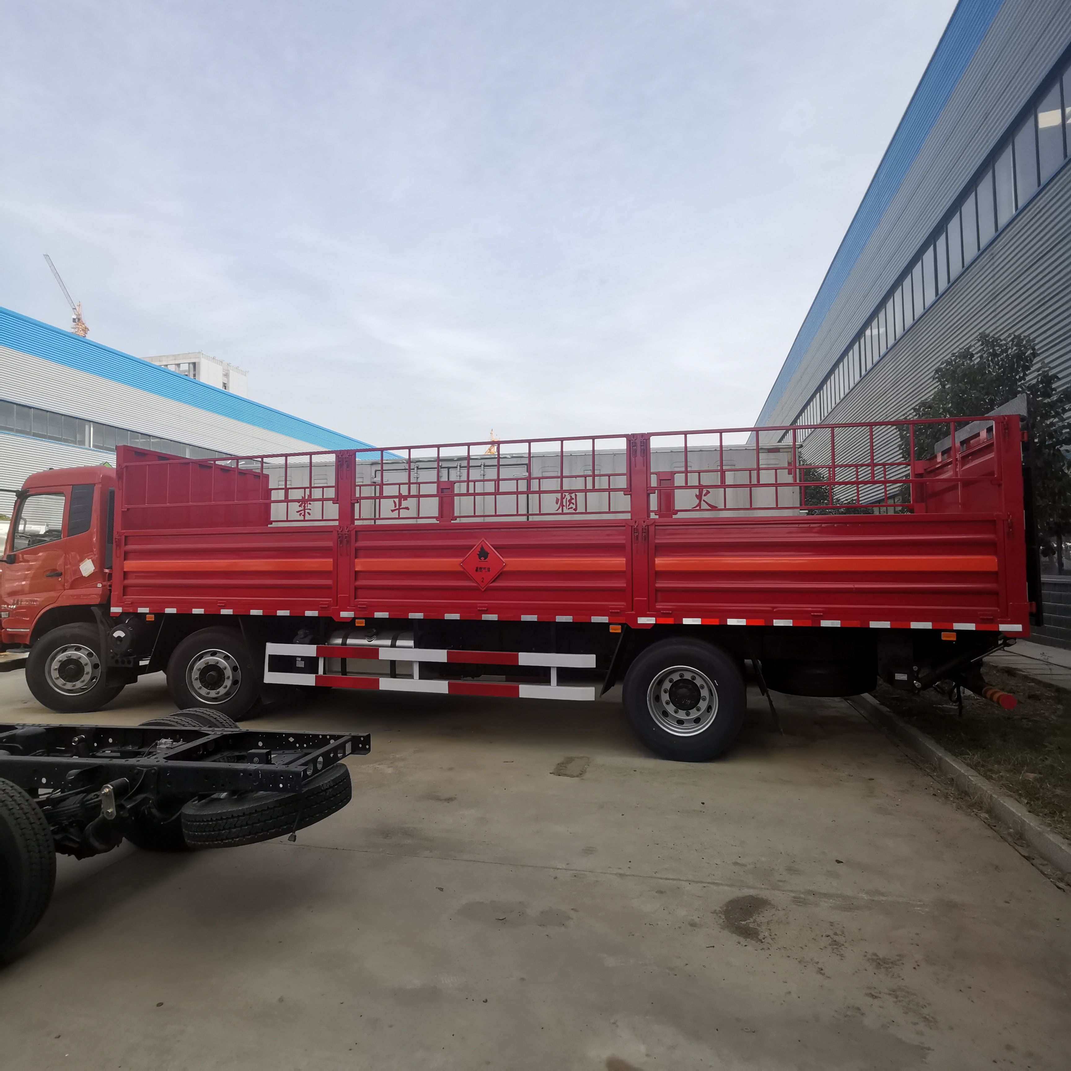 東風天錦三軸國六帶液壓尾板氣瓶車采用東風天錦危險品車底盤,D530排半標準頂駕駛室,發動機B6.2NS6B245(245馬力發動機),DC7J100TA變速箱,前橋6噸,后橋10噸。采用3/3/-板簧,280L鋁油箱,排氣管前置,前盤制動,前輪爆胎應急。帶車道偏離預警,防碰撞預警,核載16.9噸。大燈高低可調,安裝防飛濺檔泥板,三角墊木,反光背心,底扳采用4mm厚綱板制作,帶活動可拆卸高欄,底部鋪靜電膠皮。帶危險品三角燈防火罩。國六東風天錦三軸7.7米氣瓶運輸車可選裝液壓尾板,裝卸貨物更方便,廠家直銷:13872880150陳經理/18372237788楊經理,程力專汽愿竭誠為您服務!該車有環保,有燃油。