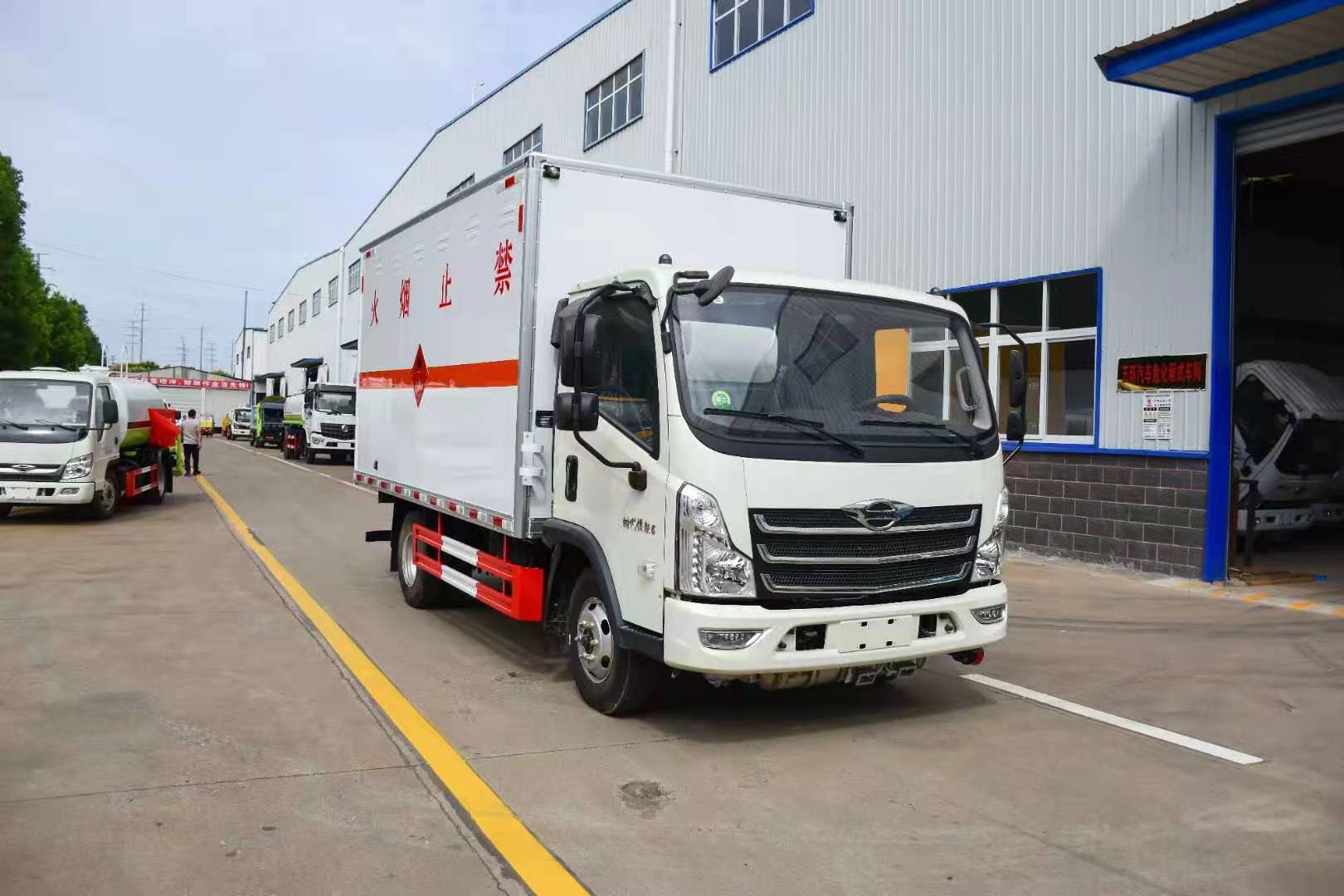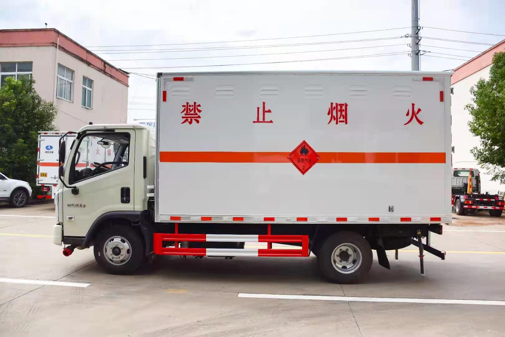 福田時代藍牌寬體危險品車嚴格按照公告尺寸制作,外板采用1mm厚冷軋板有一次性成型的百葉窗,內飾為導電性能良好的鋁板有透氣孔,內襯為矩形管骨架牢靠穩定,內部填充為透氣防潮阻燃的擠塑板,四種材料經現代工藝復合而成,廂體外部上下鋁合金型材包邊,底板和車廂前下部鋪橡膠皮,后門雙開,右側中部單開門,內部有固定貨物的臥環,車輛外部有靜電帶、滅火器、防火罩,車廂內安裝煙霧報警器和門防盜報警器,嚴格按照國家危險品相關法規張貼。