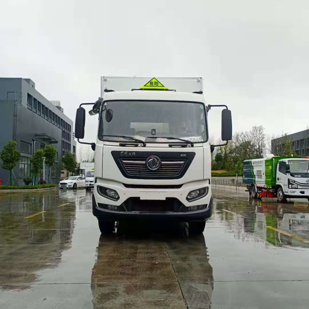 東風(fēng)天錦KR國六危險(xiǎn)品車嚴(yán)格按照公告尺寸制作,外板采用1mm厚冷軋板有一次性成型的百葉窗,內(nèi)飾為導(dǎo)電性能良好的鋁板有透氣孔,內(nèi)襯為矩形管骨架牢靠穩(wěn)定,內(nèi)部填充為透氣防潮阻燃的擠塑板,四種材料經(jīng)現(xiàn)代工藝復(fù)合而成,廂體外部上下鋁合金型材包邊,底板和車廂前下部鋪橡膠皮,后門雙開,右側(cè)中部兩個(gè)雙開門,內(nèi)部有固定貨物的臥環(huán),車輛外部有靜電帶、滅火器、防火罩,車廂內(nèi)安裝煙霧報(bào)警器和門防盜報(bào)警器,嚴(yán)格按照國家危險(xiǎn)品相關(guān)法規(guī)張貼。