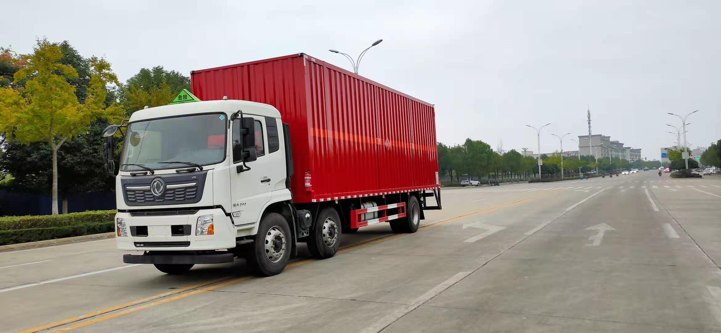 東風天錦三軸9米易燃液體廂式運輸車采用天錦D530排半駕駛室,康明斯245馬力六缸機,大同七擋變速箱,鋁合金280L油箱,帶空調,電動玻璃,行車記錄儀,空氣懸掛,排氣管前置,前盤后鼓,ABS 斷氣剎,方向助力,離合器助力,發動機制動.