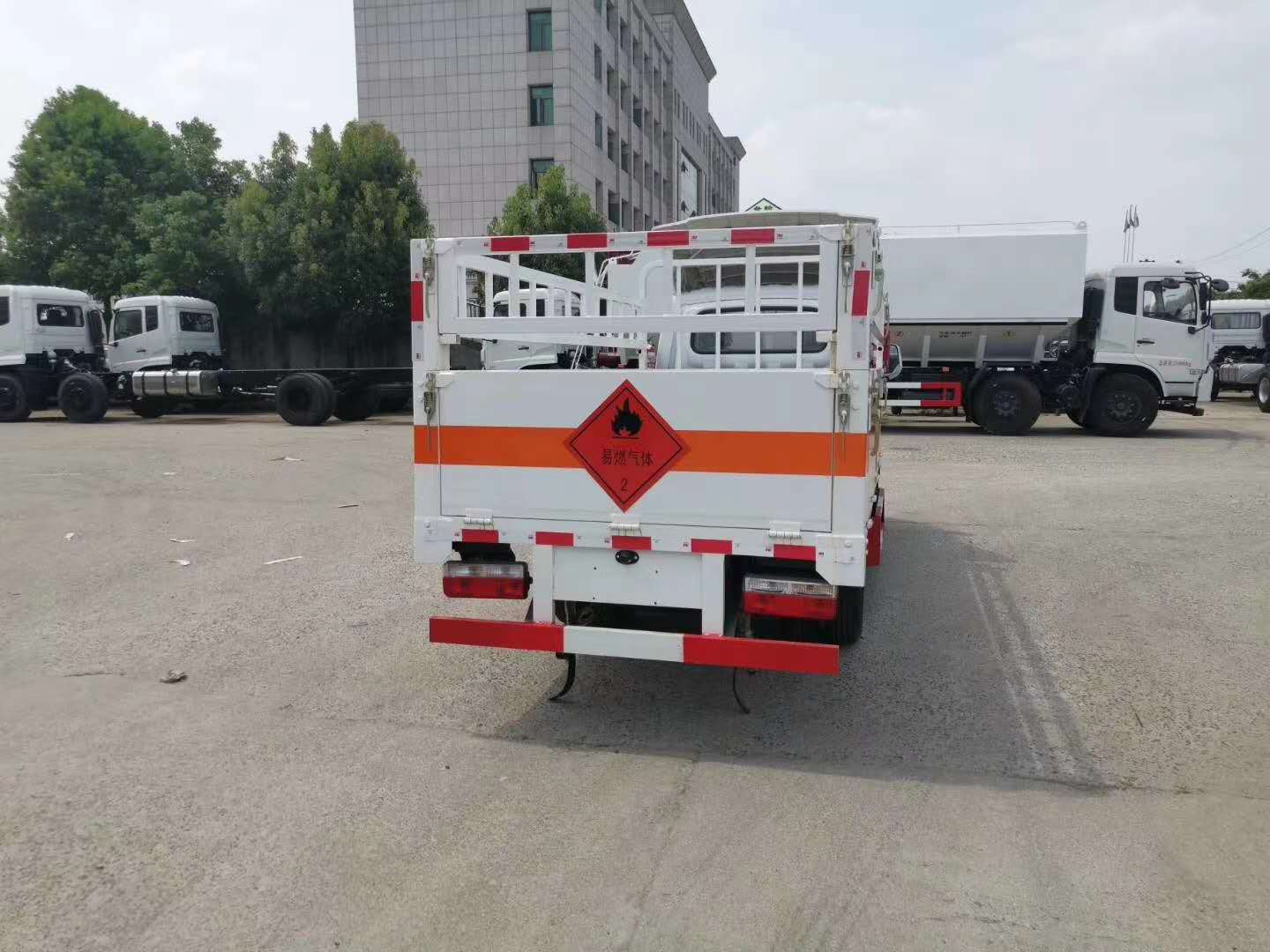 東風途逸3米5柴油國六氣瓶車嚴格按照公告尺寸制作,貨箱可選低欄板式貨箱和可拆卸式花欄式貨箱,底板上鋪靜電膠皮,嚴格按照國家危險品法規進行“易燃氣體”標識粘貼,隨車配備手提滅火器,危險品三角頂燈,防火帽等。帶整車合格證、隨車工具、服務手冊、保修手冊。