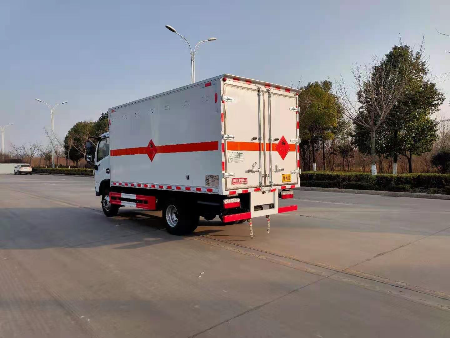 東風(fēng)福瑞卡危險(xiǎn)品車廂體材質(zhì)為復(fù)合板廂體,底部鋪有阻燃導(dǎo)靜電膠板,廂體側(cè)面裝有固定拉環(huán)。在車廂內(nèi)頂部安裝感煙報(bào)警器,在門器框上方安裝有防盜報(bào)警器,廂體外側(cè)安裝示廓燈及滅火器支架,配置兩個(gè)滅火器,并有“嚴(yán)禁煙火”和“易燃?xì)怏w”等字樣,廂體周邊貼反光標(biāo)識(shí)。后門貼有安全告示,危險(xiǎn)品標(biāo)牌。車輛尾部副梁安裝兩條拖地導(dǎo)靜電帶,駕駛室頂部裝有安全三角燈。廂體顏色可定制:黃、白、灰色等。