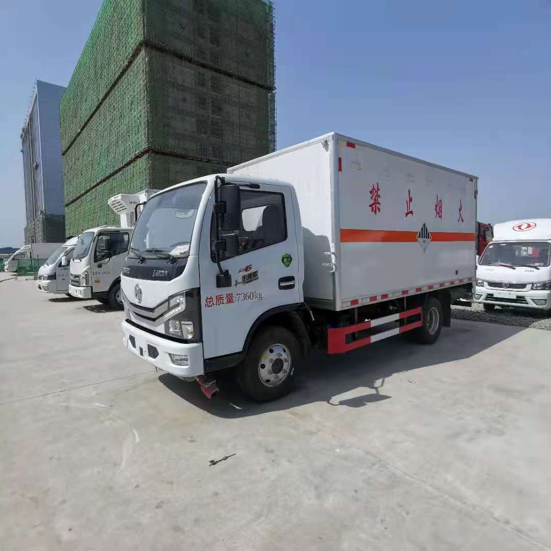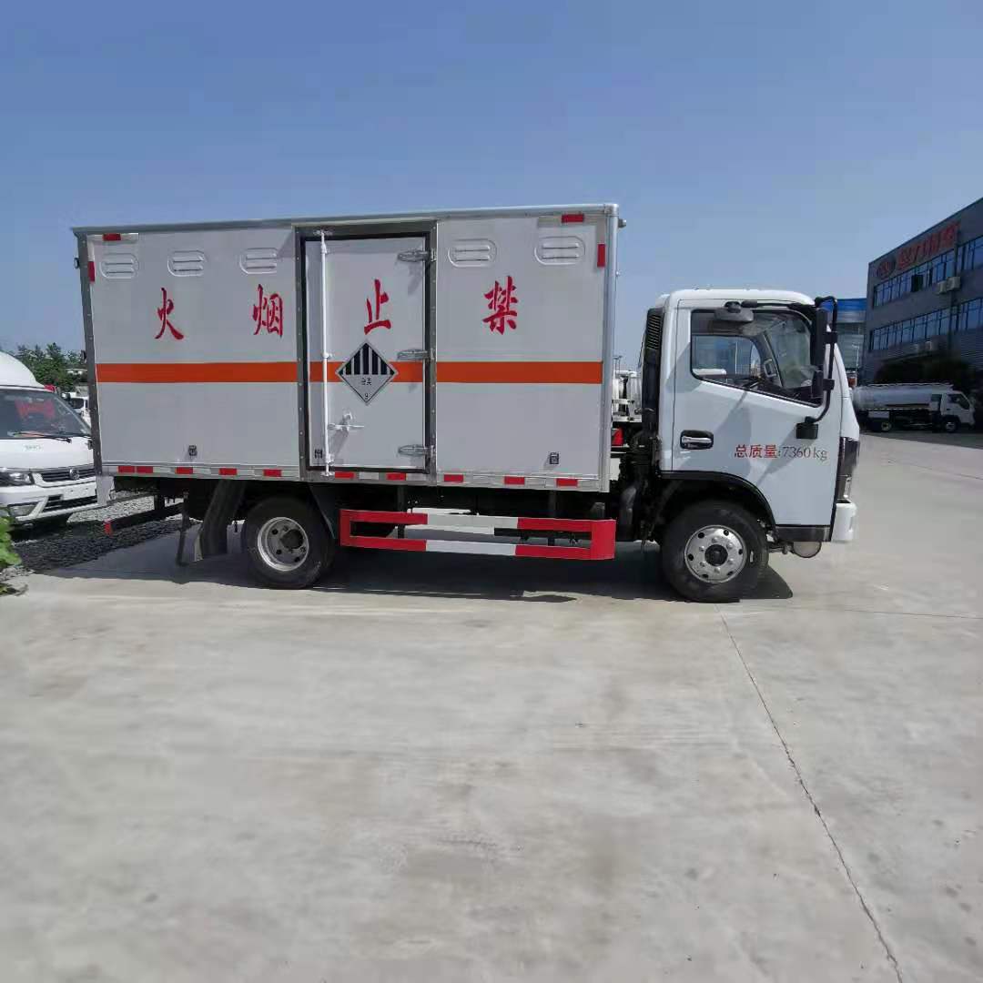 東風多利卡國六黃牌雜項危險品車廂體為雙層金屬骨架結構,外部為冷扎鋼板,內壁采用鋁合金板蒙面,夾層為隔熱阻燃材料填充。設置對開門,側壁設有防雨功能自然通風窗口,以使廂內外空氣流動,廂體內部做防靜電處理,廂體底部與廂內前部鋪有阻燃導靜電膠板,并與底盤等電位連接,通過車輛后端的導靜電裝置與大地相連,可防止靜電火花的產生和車輛靜電及時釋放,提高易燃氣體廂式運輸車的安全性。廂體內部前面和側面裝有固定拉環,與捆綁帶使用捆綁貨物以避免移動,保證安全。帶防盜報警器、靜電帶。