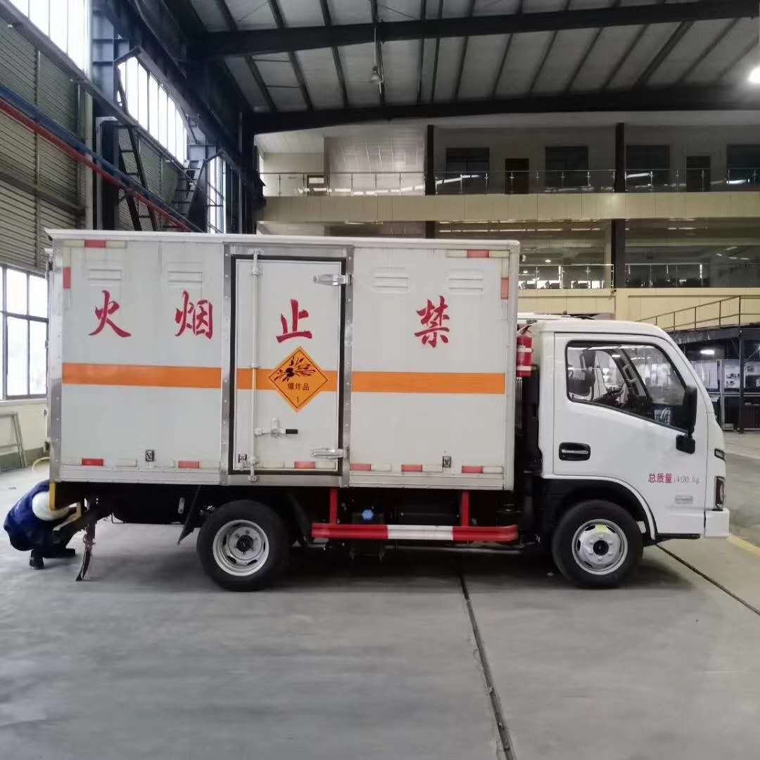 躍進國六柴油S80危險品車整車尺寸5150,5050×1895,1840,1790×2710,2610,2460,廂體尺寸3350,3100×1750,1690×1740,1650,1500,總質量4120kg,額載質量1700kg,廂體為雙層金屬結構,外板采用靜電屏蔽冷軋鋼板,中間填充B1級阻燃泡沫,內飾為鋁板。廂體上側安裝防雨通風透氣孔。底板為平板,上鋪防靜電膠皮,廂體右側中開側門。廂內兩側加裝固定貨物臥環(huán),門框帶防盜報警器,頂部帶煙霧報警器。