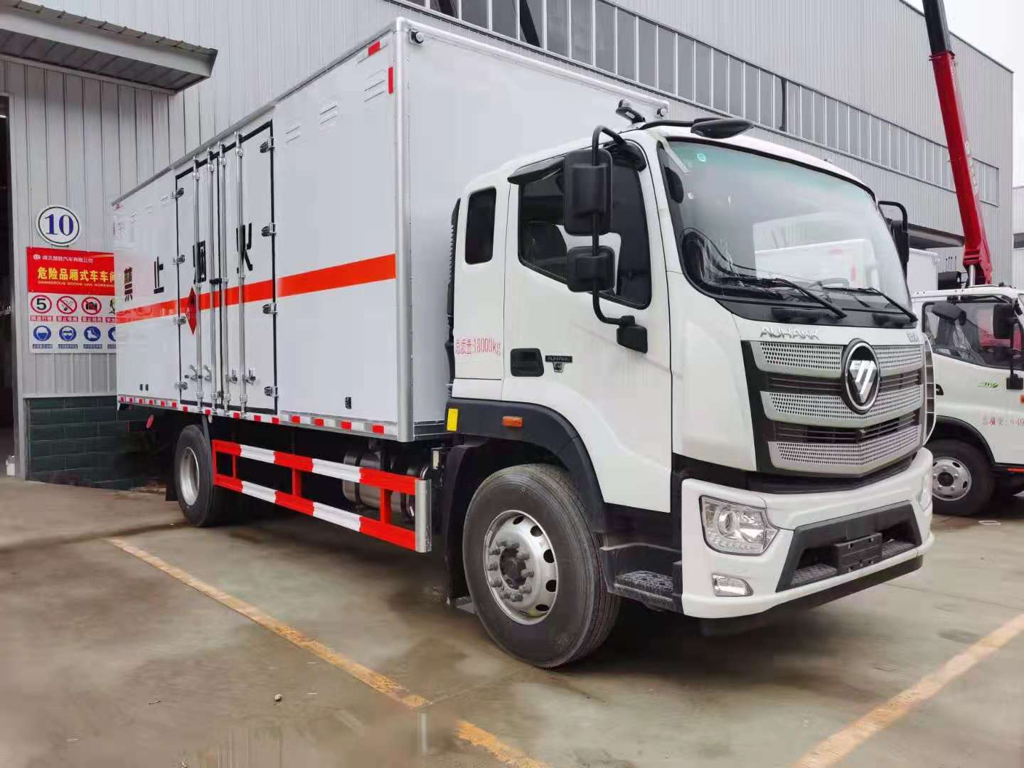 福田歐航國六6米8危險品車外板采用1mm厚冷軋板有一次性成型的百葉窗,內飾為導電性能良好的鋁板有透氣孔,內襯為矩形管骨架牢靠穩定,內部填充為透氣防潮阻燃的擠塑板,四種材料經現代工藝復合而成,廂體外部上下鋁合金型材包邊,底板和車廂前下部鋪橡膠皮,后門雙開,右側中部單開門,嚴格按照國家危險品相關法規張貼。