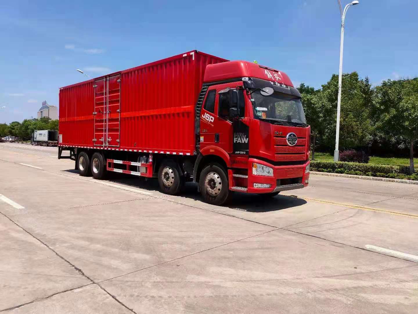 新款解放前四后八320馬力易燃液體廂式運輸車可選瓦楞廂體也可選復合板廂體,加裝液壓尾板不超重,歡迎各新老客戶來電咨詢訂購!