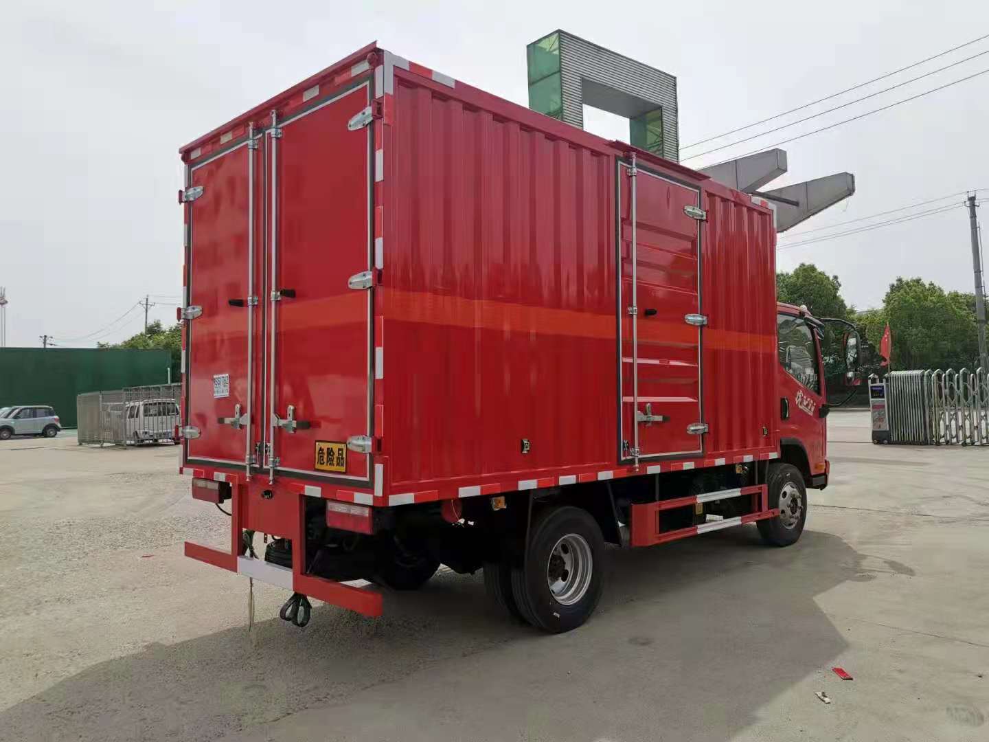 解放虎V國(guó)六紅色瓦楞板危險(xiǎn)品車(chē)采用解放虎V危險(xiǎn)品車(chē)專(zhuān)用底盤(pán),藍(lán)牌6檔變速箱,寬體駕駛室,帶中控鎖、電動(dòng)門(mén)窗、行車(chē)記錄儀、方向助力、原廠空調(diào)。重點(diǎn)是藍(lán)牌少有的3人座,濰柴130馬力發(fā)動(dòng)機(jī),是目前藍(lán)牌車(chē)型中少有的馬力大車(chē)型。該車(chē)采用的是瓦楞板危險(xiǎn)品車(chē)廂體,內(nèi)飾為導(dǎo)電性能良好的鋁板有透氣孔底板和車(chē)廂前下部鋪橡膠皮,后門(mén)雙開(kāi),右側(cè)根據(jù)客戶要求定制的是前開(kāi)側(cè)門(mén),方便客戶后期加裝隔艙。內(nèi)部有固定貨物的臥環(huán),車(chē)輛外部有靜電帶、滅火器、防火罩,車(chē)廂內(nèi)安裝煙霧報(bào)警器和門(mén)防盜報(bào)警器,嚴(yán)格按照國(guó)家危險(xiǎn)品相關(guān)法規(guī)張貼。