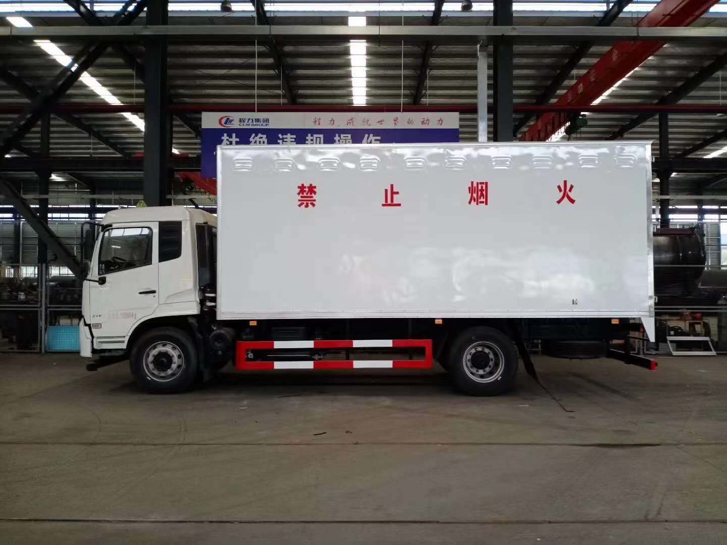 東風(fēng)天錦國六6米2爆破器材運輸車廂體配置:外飾冷軋鋼板,內(nèi)飾鋁合金板,中間填充隔熱阻燃材料,廂體兩側(cè)上方設(shè)有防雨功能自然通風(fēng)窗口,底部鋪有阻燃導(dǎo)靜電膠板,廂體側(cè)面裝有固定拉環(huán),與捆綁帶使用捆綁貨物以避免移動。在車廂內(nèi)頂部安裝感煙報警器,在門器框上方安裝有防盜報警器,廂體外側(cè)安裝示廓燈及滅火器支架,配置兩個滅火器,并有“嚴(yán)禁煙火”和“爆”等字樣,廂體周邊貼反光標(biāo)識。后門貼有安全告示,危險品標(biāo)牌。車輛尾部安裝兩條拖地導(dǎo)靜電膠帶,駕駛室頂部裝有安全三角燈。廂體顏色有:黃、白、灰色等可選。