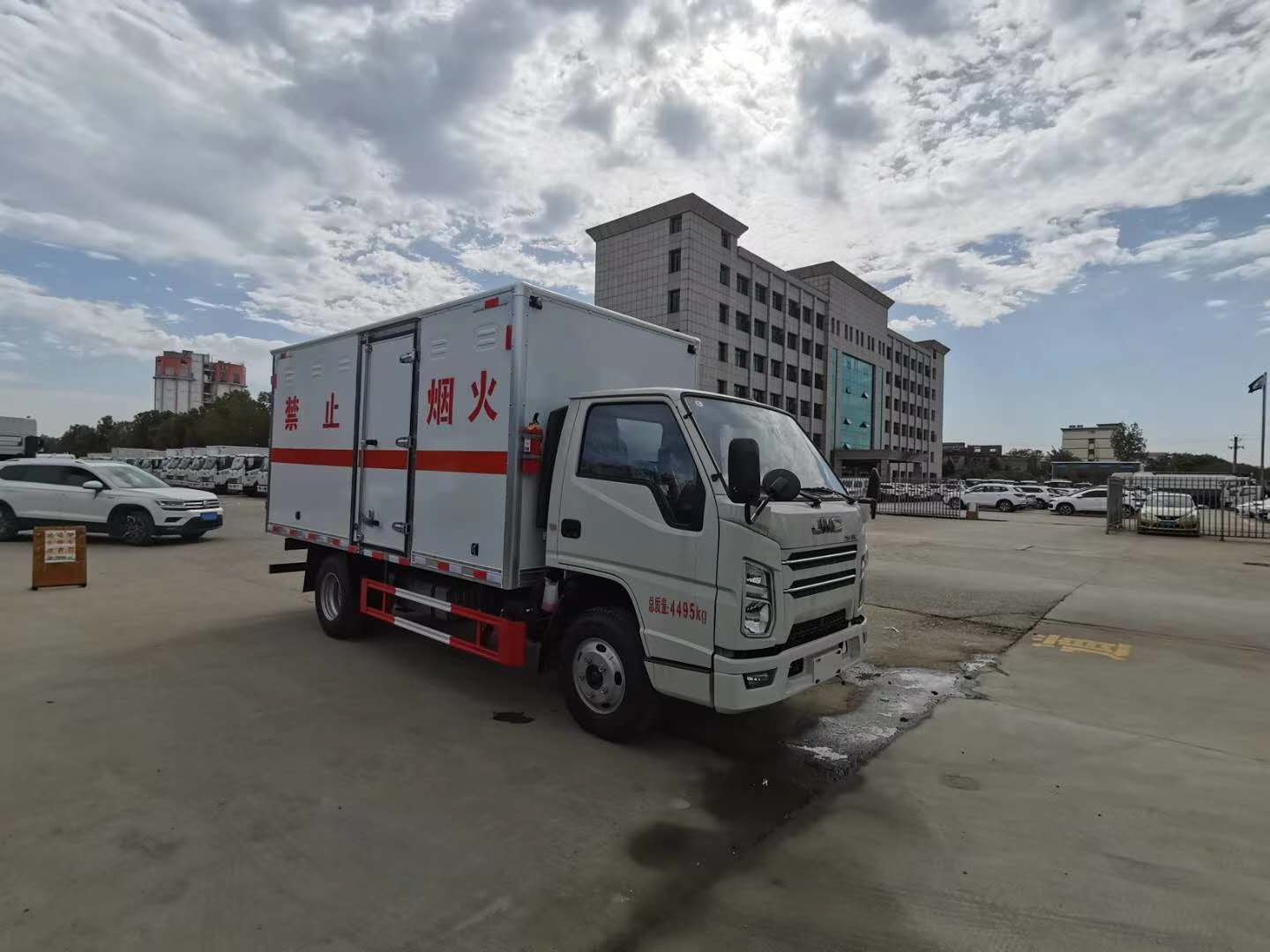 江鈴順達藍牌易燃氣體廂式運輸車外形尺寸:(長:5995;寬:2120,2270;高:2300;),箱體尺寸:(長:4200,4150;寬:1950,2100;高:600,550;),總質量(Kg):4495;額定載質量(Kg):1445;整備質量(Kg):2920;箱體標配3個厚的花紋板,副梁標配120的槽鋼,龍門架為100的槽鋼,墻板厚度為1.2個厚的冷軋板,廂體內部選裝固定貨物的卡槽,橫梁間距為320CM,底板配有靜電膠皮,選裝液壓尾板,底板加厚,橫梁加密,上部高欄中部打斷或底板立柱打斷。廂體可選裝瓦楞板結構墻板,平面板結構墻板,(可拆卸),選裝上部花欄上下翻轉或左右開啟.整車按照公告要求張貼反光標識,危險品標牌,安全告示等,靜電尾帶兩根,防火帽,隨車滅火器(一對),按照公告要求張貼“易燃氣體”“不燃氣體”標識。