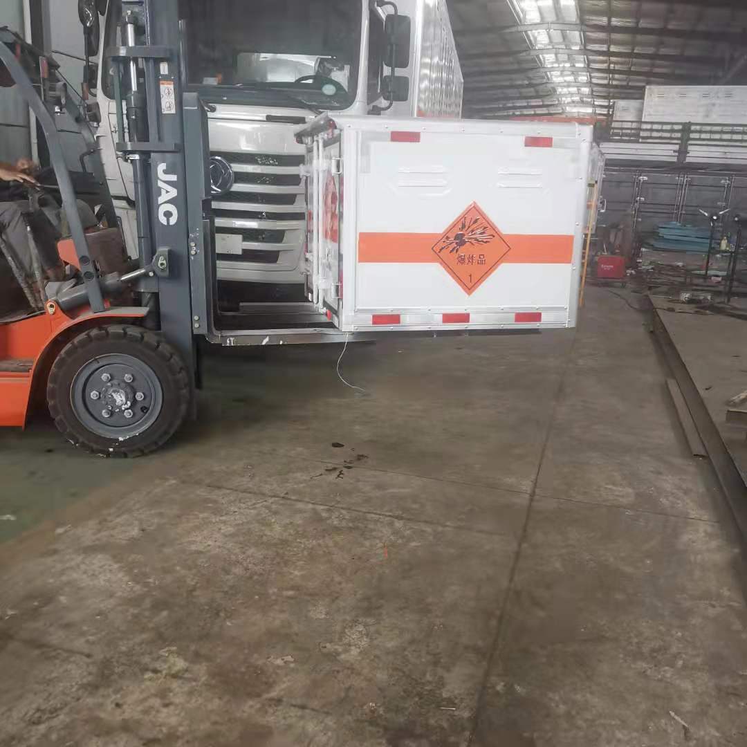 皮卡防爆箱外板采用1mm厚冷軋板有一次性成型的百葉窗,內飾為導電性能良好的鋁板有透氣孔,內襯為矩形管骨架牢靠穩定,內部填充為透氣防潮阻燃的擠塑板,四種材料經現代工藝復合而成,廂體外部上下鋁合金型材包邊,底板和車廂前下部鋪橡膠皮,后門雙開,右側中部單開門,車輛外部有靜電帶、滅火器、防火罩,車廂內安裝煙霧報警器和門防盜報警器,嚴格按照國家危險品相關法規張貼。