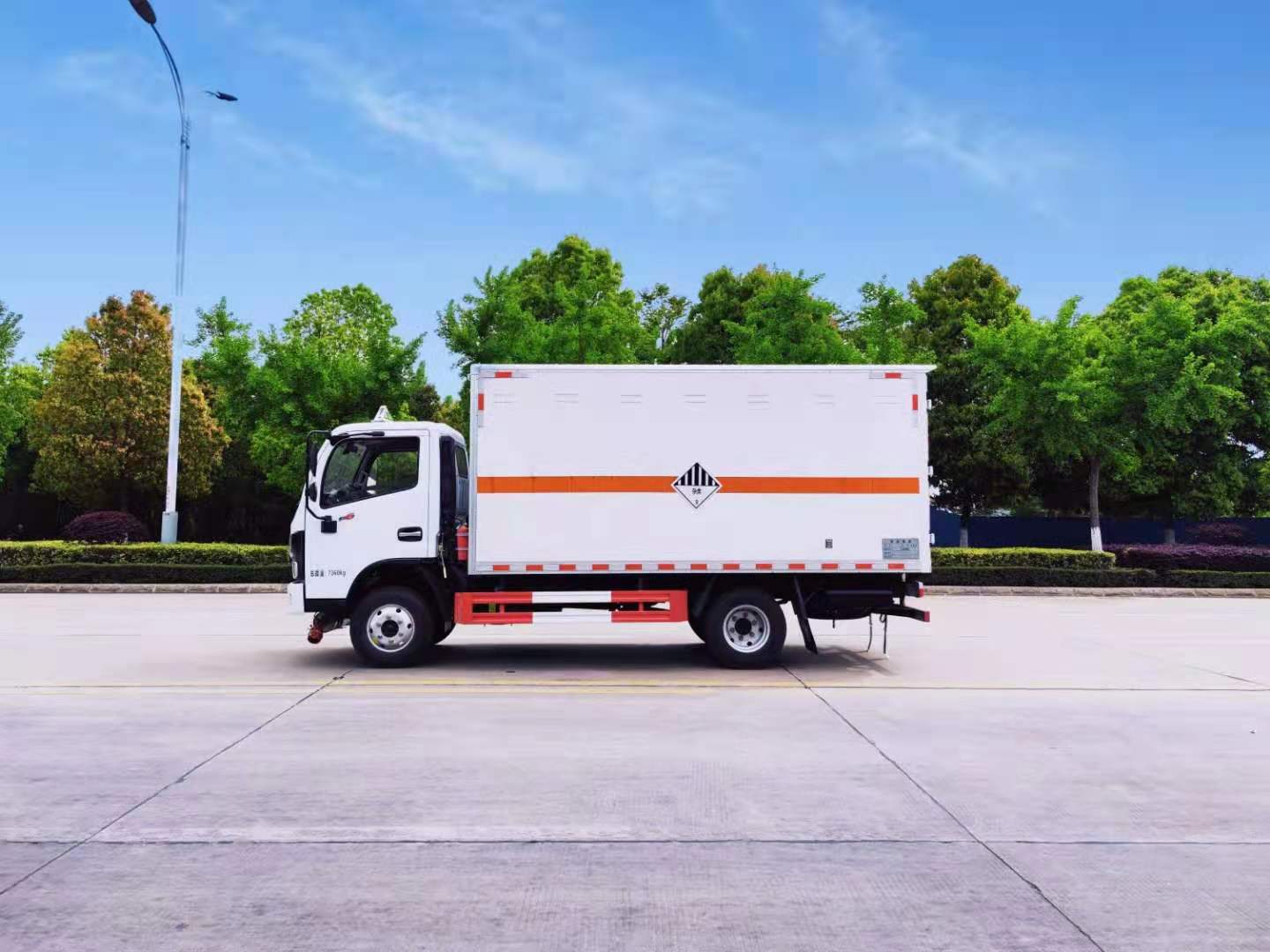 東風福瑞卡國六雜項危險品車外板采用1mm厚冷軋板有一次性成型的百葉窗,內飾為導電性能良好的鋁板有透氣孔,內襯為矩形管骨架牢靠穩定,內部填充為透氣防潮阻燃的擠塑板,四種材料經現代工藝復合而成,廂體外部上下鋁合金型材包邊,底板和車廂前下部鋪橡膠皮,后門雙開,右側中部單開門,車輛外部有靜電帶、滅火器、防火罩,車廂內安裝煙霧報警器和門防盜報警器,嚴格按照國家危險品相關法規張貼。