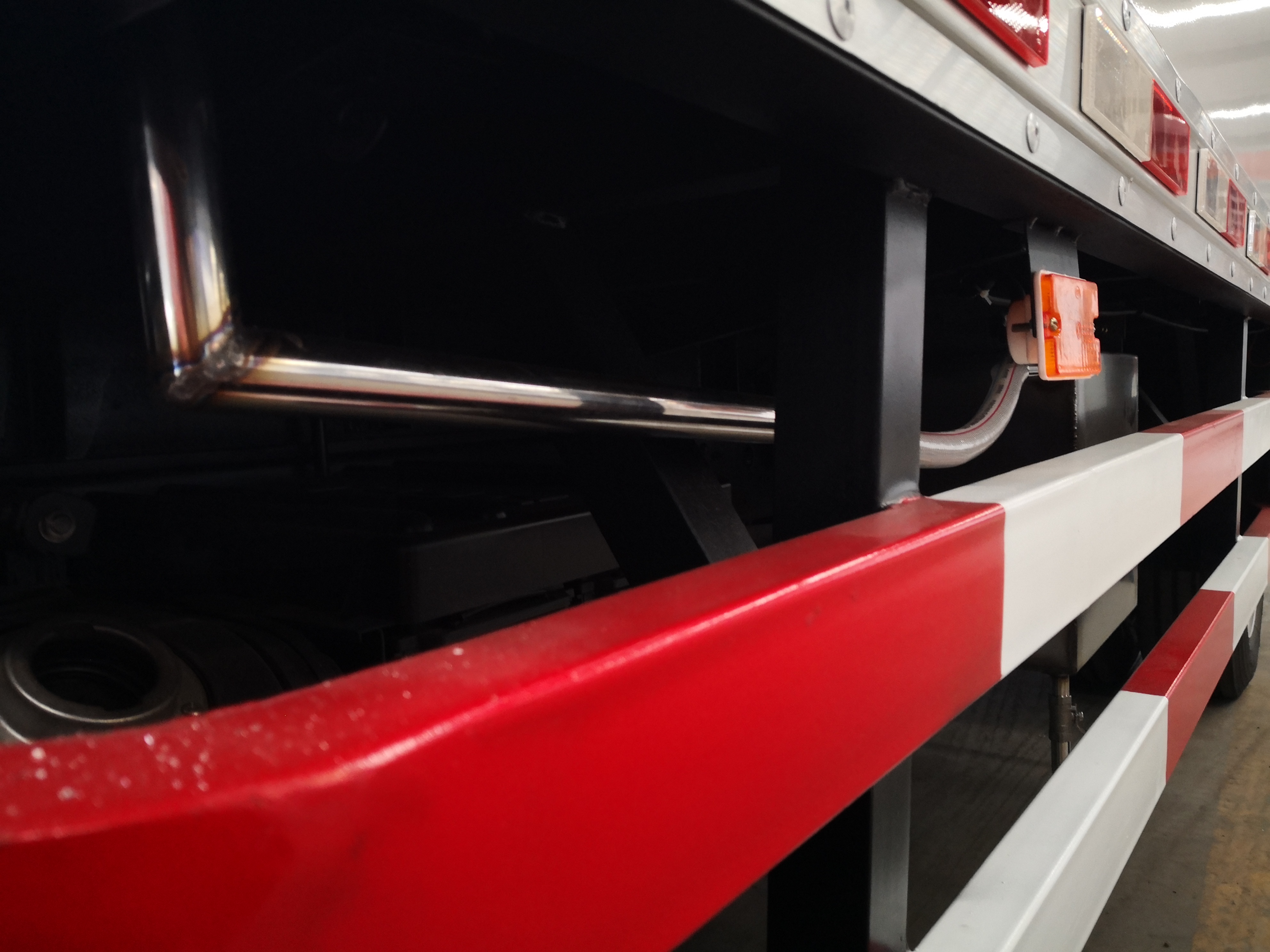 躍進S80國六腐蝕品廂式運輸車可根據客戶要求進行如下定制:1)底板采用不銹鋼,在底板兩側開不銹鋼導流槽,廂體進行防腐處理,廂體底部加裝活動式污水收集箱(如下圖所示):