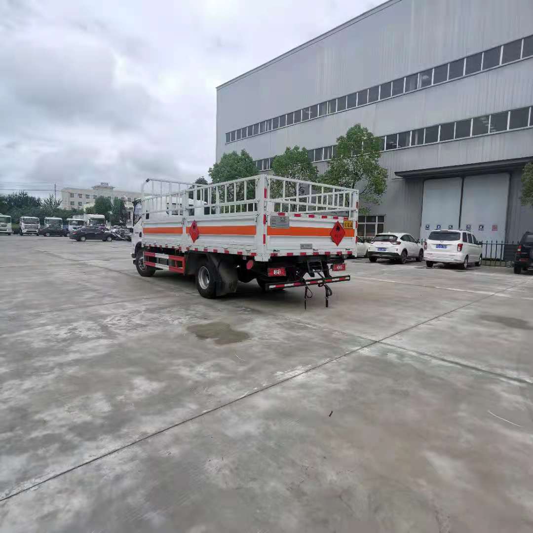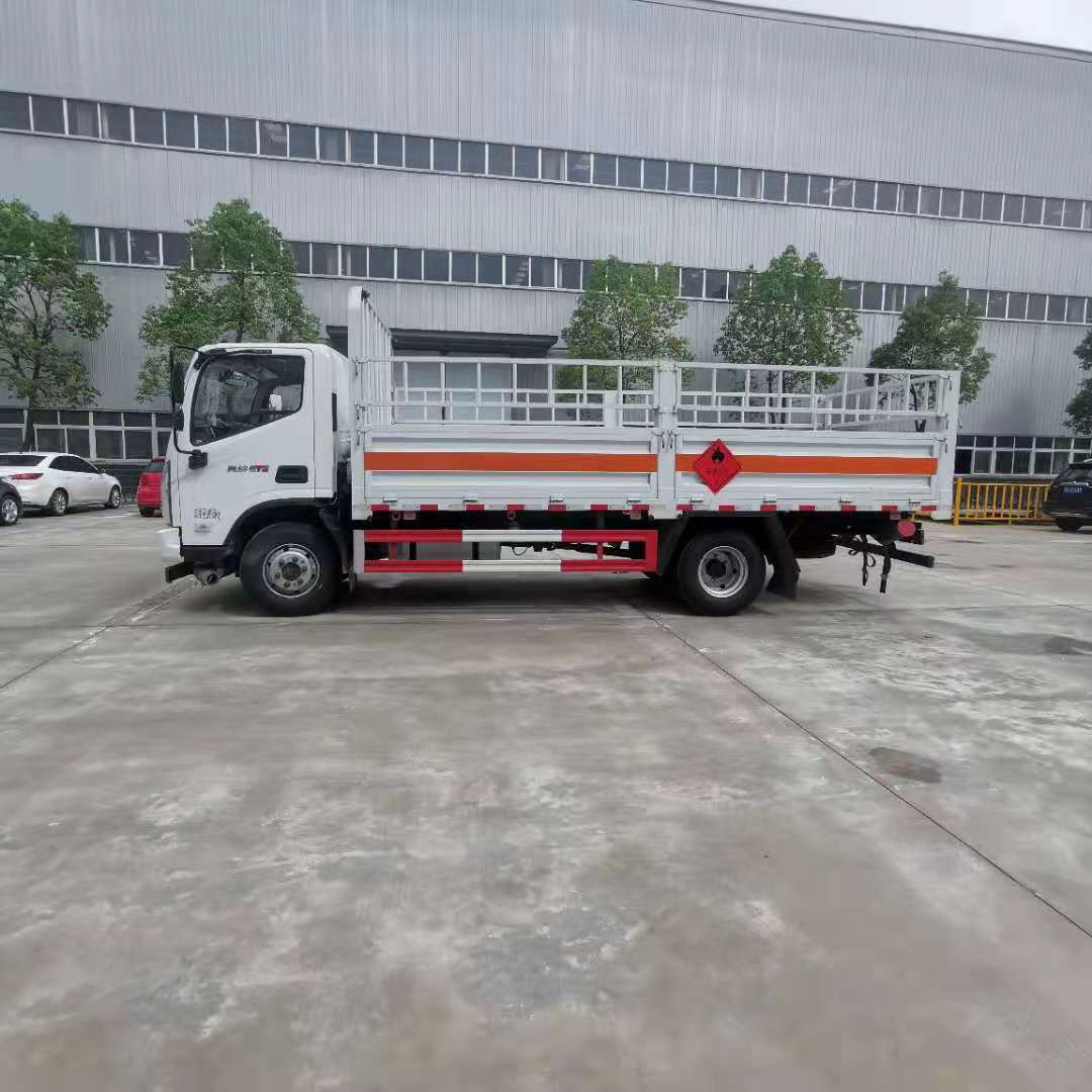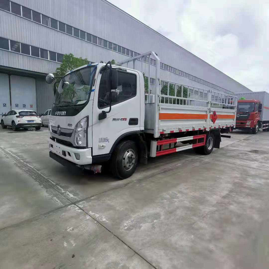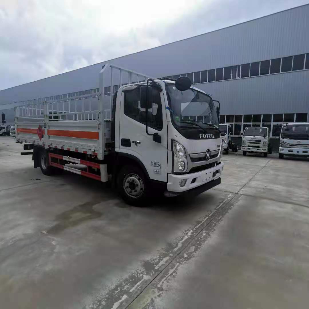 福田奧鈴4米2額載4噸國六氣瓶運輸車采用福田奧鈴危險品車專用底盤,底盤型號:BJ1128VGJEA-AC1,單排駕駛室,F3.8NS6B156康明斯156馬力發動機,6T120發動機,9R22.5輪胎,前盤后鼓 帶手動翻轉、定速巡航、原廠空調、帶中控鎖+電動車窗+遙控,北斗雙模車載終端/MP3/ABS/動力轉向/針織座椅,8T后橋,帶新規雙預警。