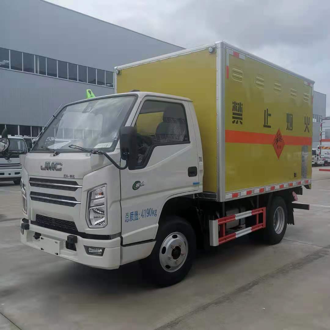 江鈴3米1國六民爆車嚴格按照公告尺寸制作,外板采用1mm厚冷軋板有一次性成型的百葉窗,內飾為導電性能良好的鋁板有透氣孔,內襯為矩形管骨架牢靠穩定,內部填充為透氣防潮阻燃的擠塑板,四種材料經現代工藝復合而成,廂體外部上下鋁合金型材包邊,底板和車廂前下部鋪橡膠皮,后門雙開,右側根據客戶要求定制的是前開側門,方便客戶后期加裝隔艙。內部有固定貨物的臥環,車輛外部有靜電帶、滅火器、防火罩,車廂內安裝煙霧報警器和門防盜報警器,嚴格按照國家危險品相關法規張貼。