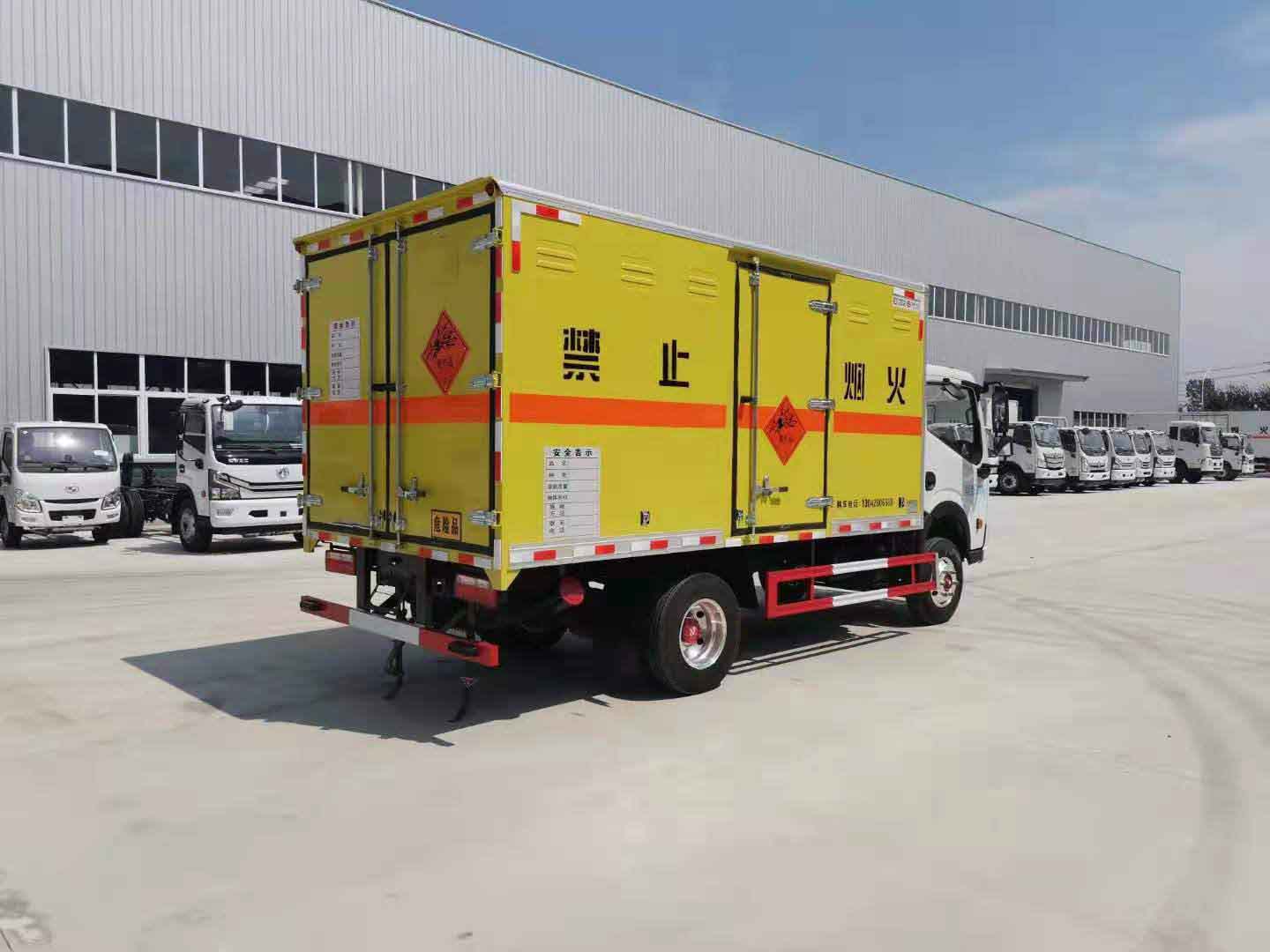 東風(fēng)多利卡玉柴140馬力爆破器材運輸車廂體外板采用冷軋鋼板一次性沖壓成型的百葉窗,內(nèi)飾為導(dǎo)電性能良好的鋁板有透氣孔,內(nèi)襯為矩形管骨架牢靠穩(wěn)定,骨架內(nèi)部填充為透氣防潮阻燃的擠塑板。廂體外部四周鋁合金型材包邊,底板和車廂前下部鋪橡膠皮,后門雙開,右側(cè)選裝側(cè)開門,內(nèi)部安裝固定貨物的臥環(huán)或腰欄,安裝煙霧報警器、防盜感應(yīng)器。車身附件靜電接地帶、滅火器、防火罩、危險品三角燈、橙色反光帶、菱形標(biāo)志牌、危險品牌、安全告示齊全。