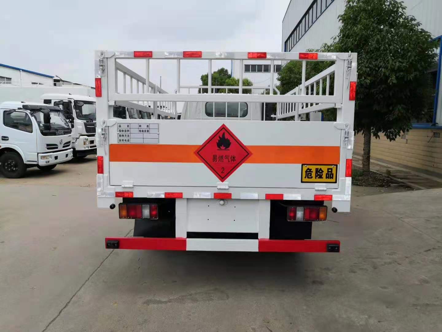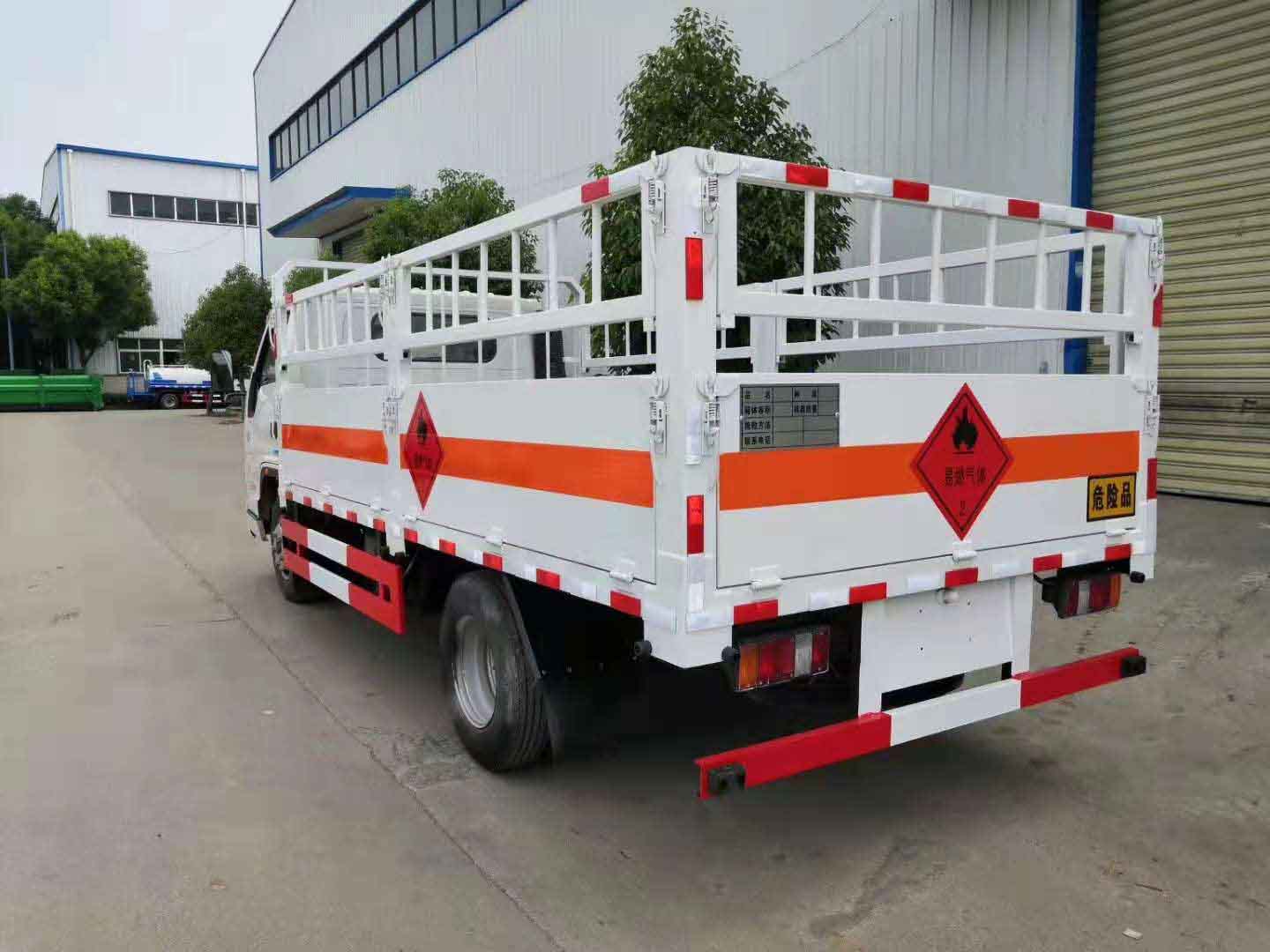江鈴國六寬體氣瓶運輸車箱體外形為倉欄式,邊板為瓦愣式可活動,上部為花籃市可拆卸,底板為3mm鋼板上面鋪防靜電膠皮,滅火器2個,大梁靜電帶,嚴格按照國家危險品相關法規張貼危險品標識和反光標牌!(選裝高欄或低欄,選裝液壓尾板)。