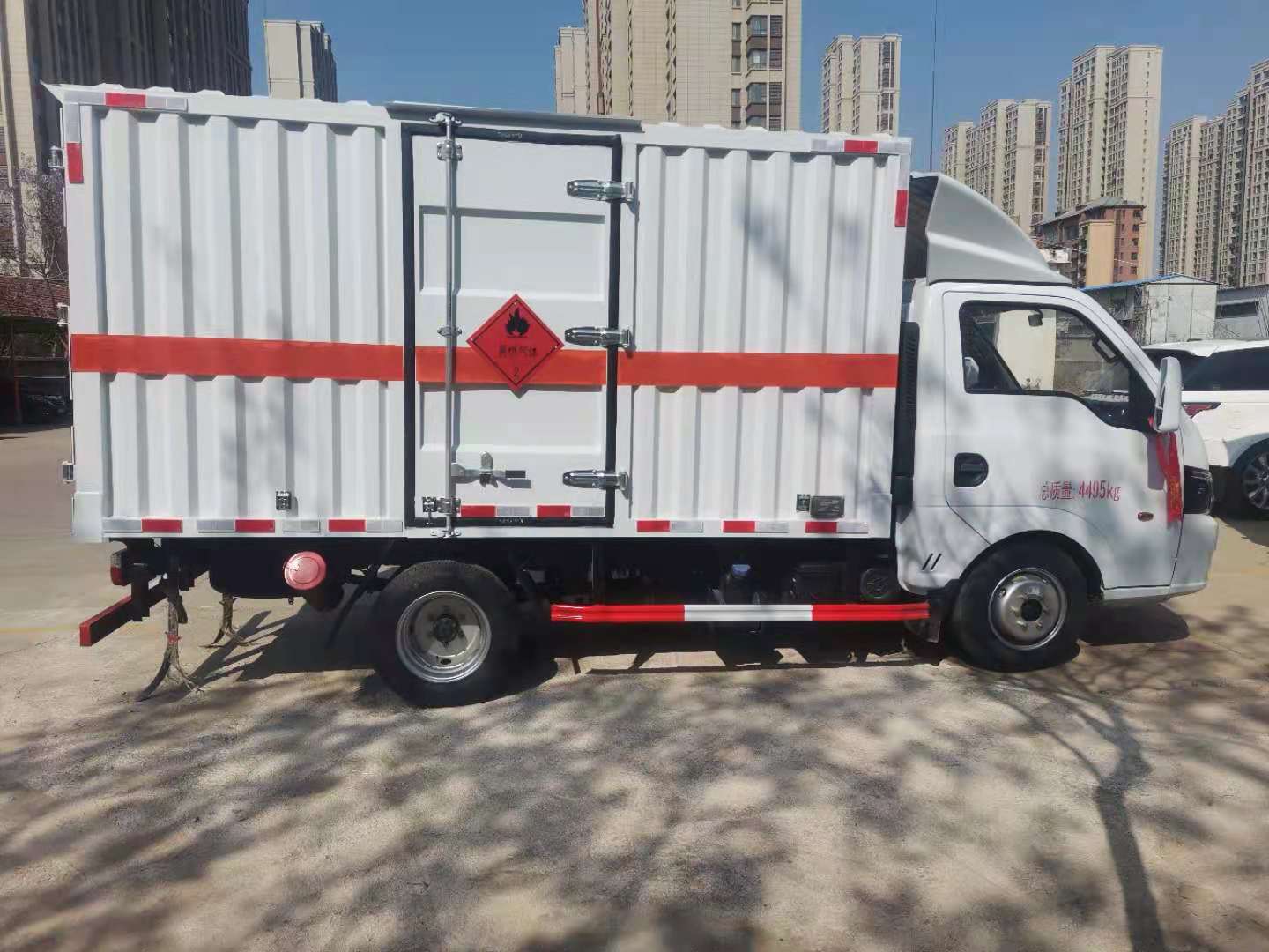 東風途逸柴油瓦楞板危險品車廂體采用采用1.2mm厚冷軋鋼板壓瓦成型,內部槽鋼骨架,底板采用3mm花紋板上鋪設防靜電膠皮。廂體右側開對開門,后部設置對開門,廂體內部兩側安裝捆綁貨物的臥環。廂體內部安裝煙霧報警器及防盜報警感應器。車輛尾部安裝兩條拖地導靜電膠帶,駕駛室頂部裝有安全三角燈。廂體顏色有:黃、白、灰色等可選。